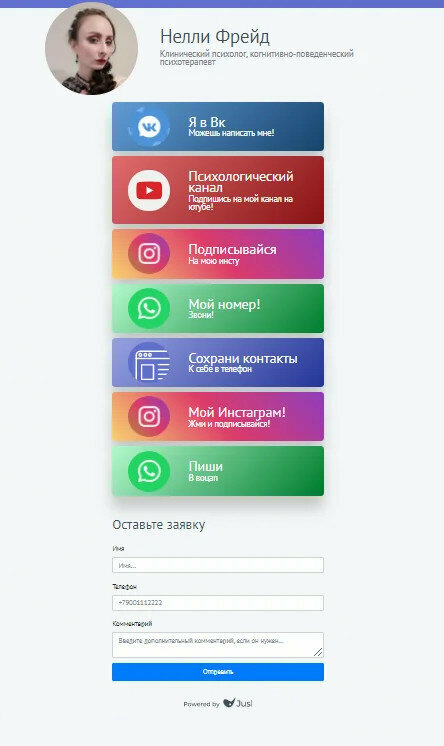 Так же делают nfc-визитки в виде стандартных пластиковых визиток или делают большие круглые визитки — все они выполняют одну и ту же функцию: предоставляют бесконтактный доступ к странице цифровой визитки. Еще делают с помощью этой технологии меню на столиках. И в круглых и в стандартного вида умных визитках находится специальный nfc-модуль, в котором и запрограммирована страница электронной визитки. Надежные компании при изготовлении таких визиток используют антиметаллическое покрытие, поскольку при отсутствии такого покрытия могут возникнуть помехи, и визитка просто не считается телефоном. Далее на визитку с помощью лазерной печати наносится изображение (лого и т.д.) или же оно наклеивается, и затем заливается смолой. Как я уже выше упоминала, если отсканировать электронную визитку, то на телефоне откроется её страница. Но недаром цифровая nfc-визитка называется умной, ведь это не просто страница с кнопками, а страница выполняющая множество задач, конечно же, в зависимости от того, с какой компанией вы работаете: в некоторых случаях это, действительно, просто страница с кнопками, поэтому будьте внимательнее. Вот какие возможности реализованы в умной визитке: На самом деле, на рынке продается куча таких визиток, и если вы загуглите, то реклама и в первых и в последних строках вывалит вам сотни этих визиток, но все они внутри в основном — это как раз таки просто белые страницы с кнопками, ведущими на какое-то ограниченное количество социальных сетей. На рынке есть интересный сервис — Jusl. И у меняя в частности визитка под его брендом. Изначально он развивался как сервис для узких специалистов — сммщиков и арбитражников, поэтому с помощью него можно сделать нечто большее. И, в общем-то, все функции умной визитки, описанные мною выше, в их электронных визитках есть. Цифровая визитка nfc — это бесконтактная визитка с nfc-чипом. Если поднести к такой электронной визитке телефон, то тут же на нем откроется страница со всеми возможными контактами. Обычно делают их круглыми, крепящимися на телефон или в виде стандартных пластиковых визиток. Умная электронная nfc визитка — это не просто страница с кнопками, а в ней реализуется множество функций (и обратная связь; и оплату можно на нее производить при необходимости; все соц.сети в ней и номера — по сути все в одном месте и с индивидуальным дизайном). Самые функциональные на рынке — это цифровые визитки от сервиса Jusl.