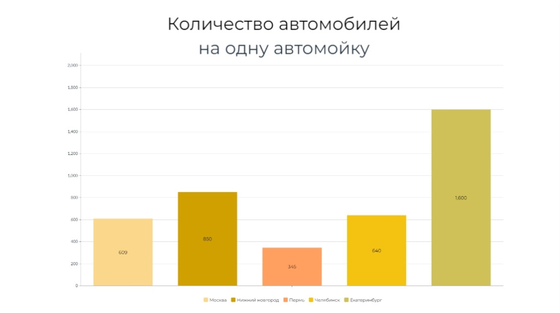 При этом востребованность услуг сопровождается дефицитом постов. В среднем на одну автомойку ежедневно приходится ~500 машин ежедневно. Тенденция сохраняется как в небольших городах, где автомоек в принципе не очень много, так и в крупных мегаполисах.