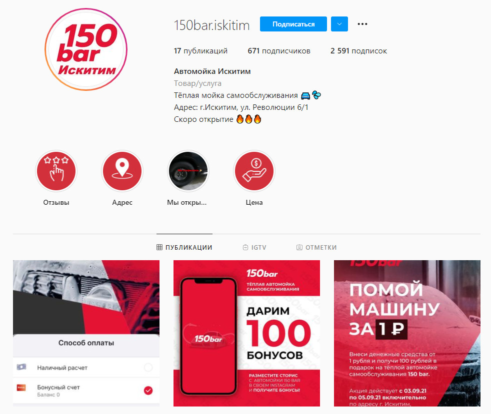 Но зато можно привлечь местных жителей и нет конкуренции: это единственная мойка в ближайшем радиусе. Помещение состоит из двух просторных широких боксов. Размер каждого бокса составляет 40 квадратных метров. На воротах заменили приводы, которые позволили им открываться автоматически. До этого ворота открывали вручную. Перед открытием задействовали три рекламных канала. Рекламу в пабликах. Через паблики в социальных сетях мы сообщили об открытии мойки прорекламировали акцию «Помой машину за рубль», которую проводили в честь этого события. Механизм такой: человек закидывает рубль, а ему взамен начисляется сто рублей в подарок. Но итоговая стоимость помывки все равно составляет один рубль. Рекламу делали и в крупных барнаульских и искитимских пабликах «ВКонтакте», «Одноклассниках» и Instagram: Barnaul22, «Я люблю Барнаул», barnaul.insta, «Чёрный список Барнаул» и др. Рекламу в сервисе «2ГИС». Через популярный картографический сервис «2ГИС» прорекламровали промокоды для клиентов. Суть механики: надо скачать мобильное приложение 150 bar, ввести промокод «2гис» и положить на счёт 100 рублей. После этого туда добавляются дополнительные 50 рублей — это позволит заказать помывку за 150 рублей. То есть помыться за 100 рублей на 150 рублей. Инстаграм. За месяц до открытия завели страницу мойки в инстаграме, где активно рекламировали открытие точки. С неё и пришла часть автомобилистов. Стартовые условия здесь максимально благоприятные: готовое помещение и выгодная аренда. Однако место не совсем удобное: мойка находится во дворах, её не видно с проезжей части, много частного сектора рядом. Зато есть своя скважина, нет конкуренции и можно привлечь местных жителей в качестве клиентов. В первый месяц работы помылось 350 машин, во второй — уже около 650 машин. Это говорит о том, что мойка активно развивается: произошёл почти двухкратный рост. В среднем приезжает по 20 машин в день. Всего за первый месяц работы мойке удалось заработать более 75 тысяч рублей чистой прибыли. Мойка начала окупать себя уже со второго месяца.