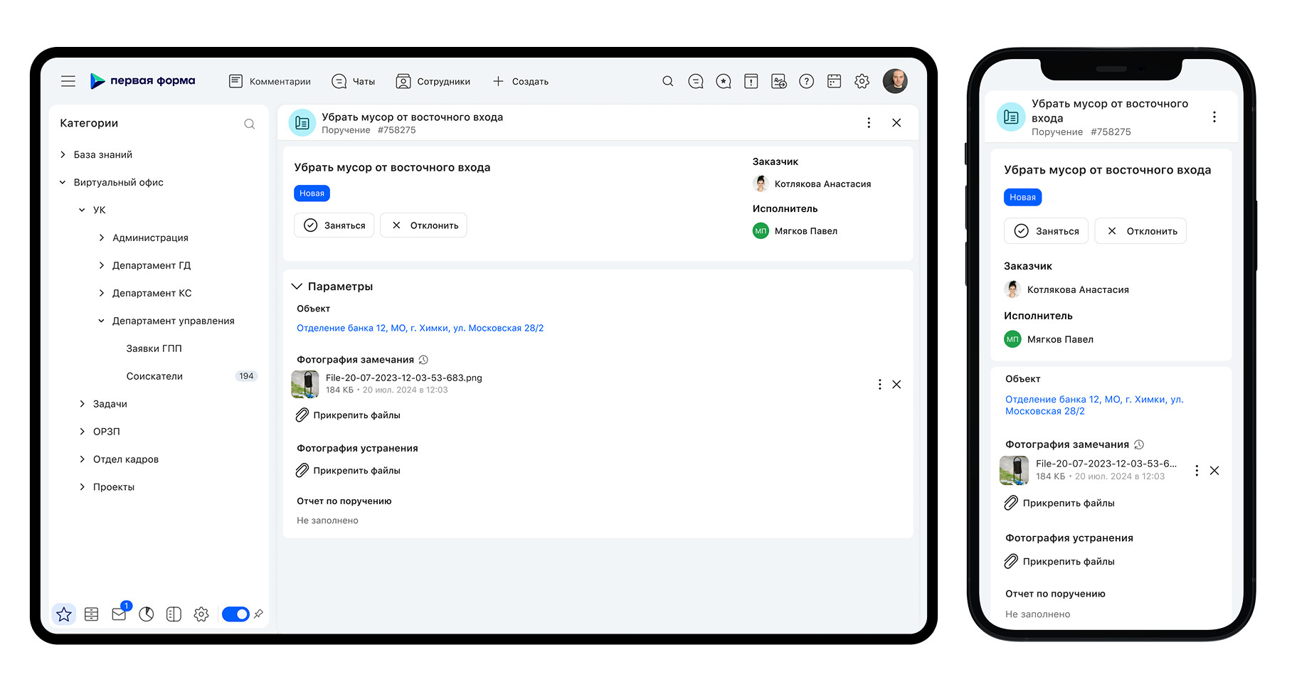 Помимо указанных в договоре работ у клиентов часто возникали дополнительные задачи. Например, заменить лампочки или срочно подготовить помещение к мероприятию. Так как поручения давали по телефону или в мессенджере, запросы часто путали и теряли.
