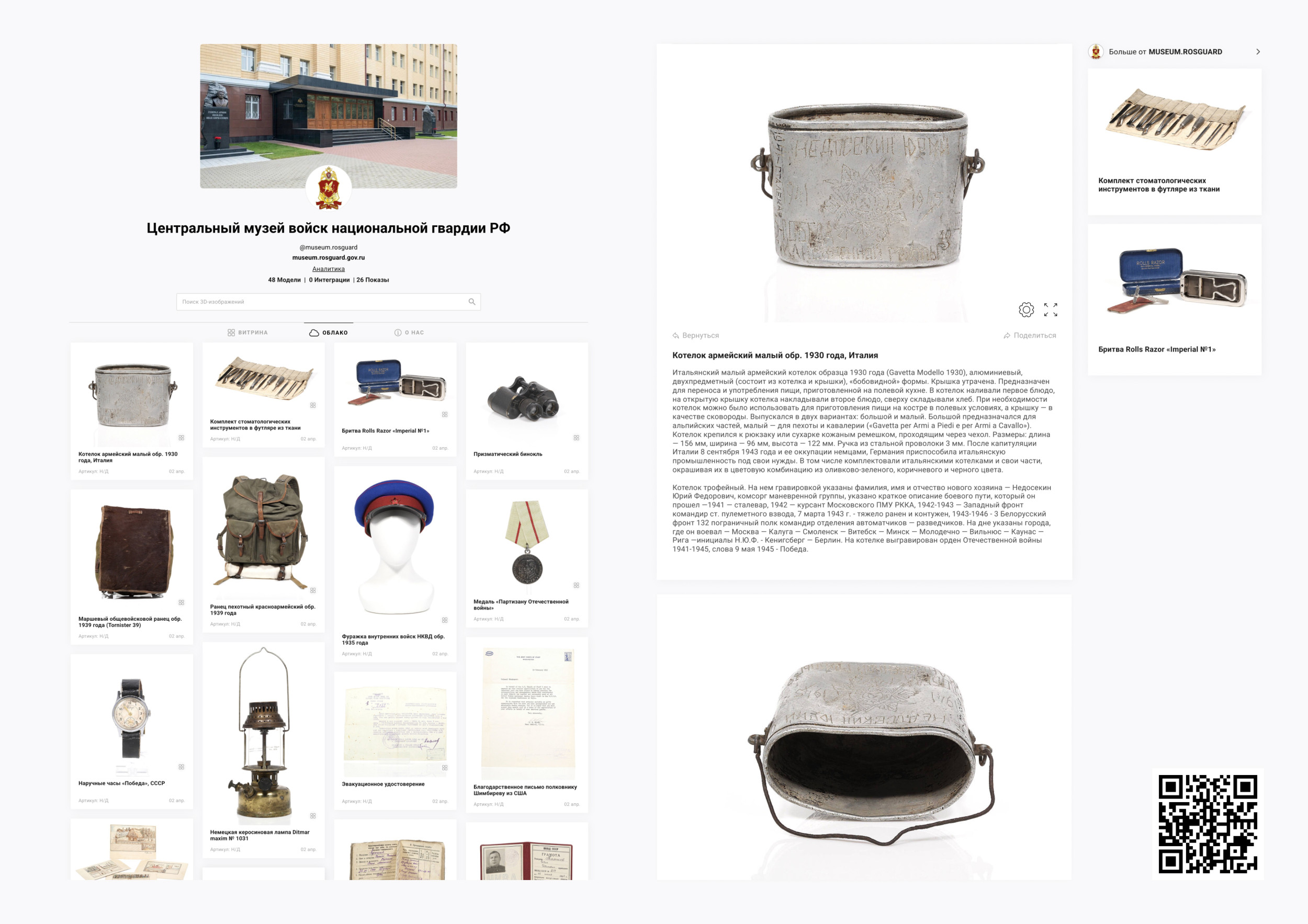 Ознакомиться с экспонатами Виртуального музея Росгвардии можно по ссылке: https://3dplatforma.ru/museum.rosguard О 3D Платформе 3D Платформа — единственная платформа в России для создания виртуальных музеев и онлайн-витрин в формате интерактивных 3D-визуализаций. На платформе вы можете посетить виртуальные музеи, выставки и витрины компаний креативных индустрий. ООО «3Д Платформа» разработала уникальное решение на базе искусственного интеллекта для оцифровки любого типа предметов. Миссия — передать традиционные ценности и развить патриотизм у жителей России. В этом году ожидается открытие лекционной платформы и сообществ. Резидент Сколково и МИК. Ссылка на сайт — https://3dplatforma.ru ВКонтакте — https://vk.com/3dplatforma Телеграм — https://t.me/creativeplatforma