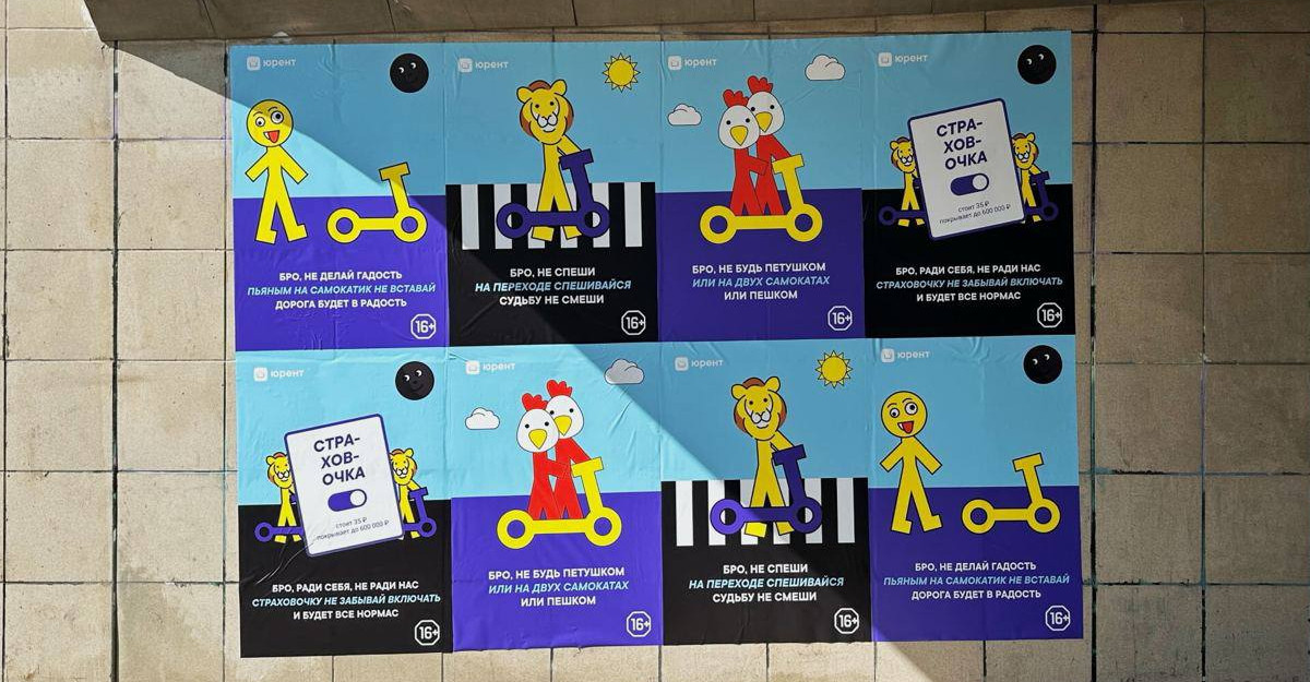 Сервис каршеринга Urent запустил PR-кампанию о безопасном вождении на электросамокатах, которая попала в боли аудитории. Компания решила не использовать стандартные призывы к безопасности, а пойти другим путем, вызвав шок и смех одновременно. На улицах Москвы появились плакаты, изображающие типичных «грешников» на электросамокатах: катающихся вдвоем, пьяных, игнорирующих правила ПДД.