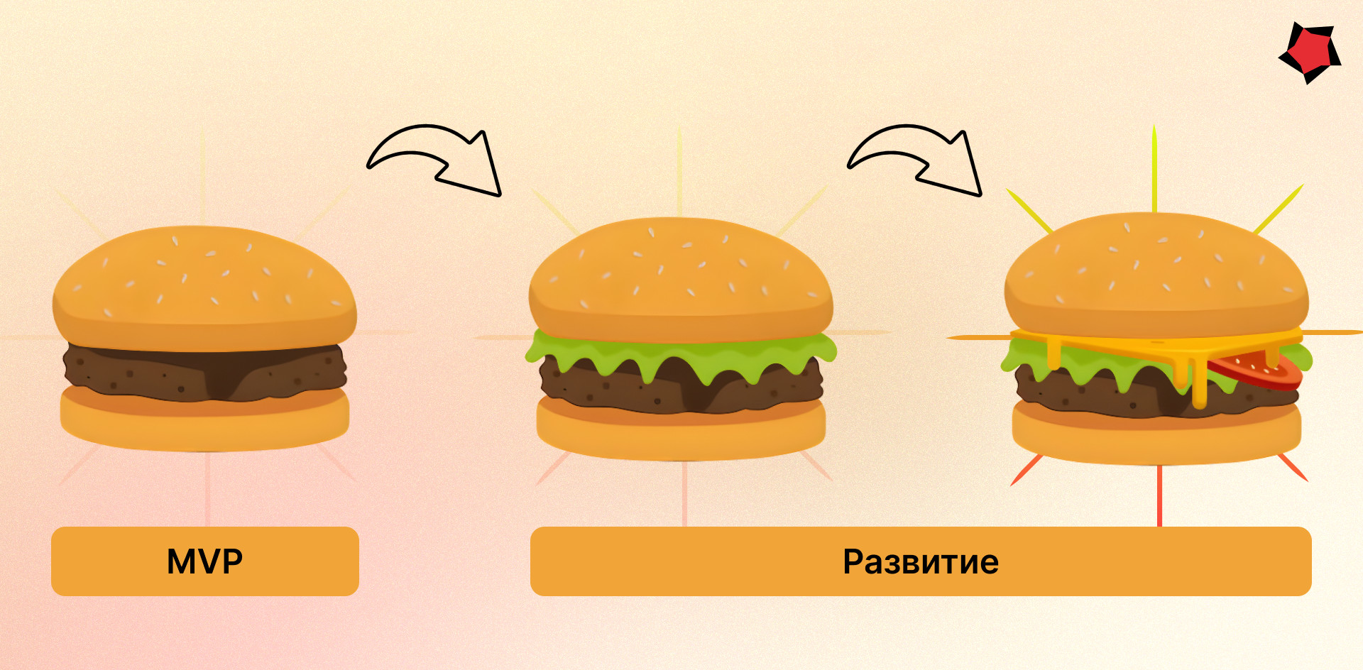 Так и мы, когда создаем MVP, дальше продолжаем с ним работать в формате спринтов и развиваем. Добавляем те самые ингредиенты, которые по итогу дадут вкусный результат.