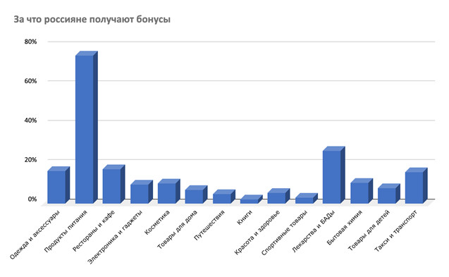 всего бонусов приносят покупки в кафе и ресторанах, супермаркетах, оплата такси