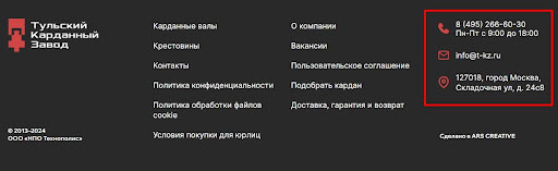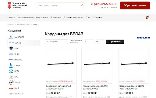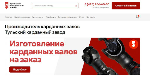 Клиенту понравилось с нами работать, поэтому он пригласил нас в другой свой проект. Новое предприятие строилось на базе выкупленных ресурсов компании KamKardan, которая занималась производством карданных валов. У компании была клиентская база, свое производство и рабочий сайт, но в какой-то момент они допустили ряд управленческих ошибок, которые затормозили развитие. На базе старого предприятия запустили полноценное производство: организовали поставки сырья и комплектующих, наладили сборку карданов для грузовиков, стройтехники, сельхозмашин, общественного и железнодорожного транспорта. К нам обратились практически сразу за услугой комплексного маркетинга. Аутсорс маркетинга для производственников — это наш основной профиль, поэтому клиент обратился точно по адресу. Мы включились в работу уже на первых этапах запуска проекта и начали с анализа конкурентов. Работу начали с того, с чего всегда начинаем с клиентами в любой нише — анализ конкурентов. Взяли 18 крупных компаний и разобрали их с разных сторон: выяснили, кто лидирует, какие фишки использует, за счет чего растет. Всю информацию собрали в отчет больше чем на 100 страниц. Чем еще занимались на первых порах: У клиента уже была частично своя команда: SEOшник и специалист по Авито. Мы подключились туда, где нужна была наша экспертиза — доработка сайта, запуск рекламы, технические работы в Битрикс24 и аналитика. Часто наши клиенты просят координировать работу сторонних подрядчиков, и получается такая масштабная аутсорс-команда маркетинга. Спустя приблизительно 7–8 месяцев совместной работы заказчик принял бизнес-решение — запустить собственную торговую марку. Первоначально компания приобрела базу клиентов и производственные мощности, однако отсутствие собственного бренда негативно сказывалось на эффективности бизнеса. В связи с этим к нам поступил запрос на создание брендинга. Эффективность логотипа определяется не только творческим подходом дизайнера, но и корректной оценкой рыночной ниши, портрета целевой аудитории и конкурентов. Несмотря на эстетическую привлекательность, важно, чтобы логотип был интуитивно понятен и вызывал правильные ассоциации со сферой деятельности компании. Именно поэтому на подготовительном этапе мы неизменно проводим масштабное исследование визуальных концепций конкурентов. Данный подход позволяет выявить наиболее востребованные цветовые решения и типологию логотипов, характерные для конкретной ниши. Работа началась с создания брендбука — мы разработали концепцию и визуальное оформление, предоставив заказчику порядка 15 различных вариантов логотипов. В результате появился бренд «Тульский карданный завод» со своим уникальным визуалом. Под новую компанию «ТКЗ» мы создали отдельный сайт на WordPress. В маркетинговое исследование также входил анализ сайтов конкурентов — изучались параметры оптимизации, современность дизайнерских решений и удобство использования. С точки зрения визуальной базы новый сайт был немного идентичен старому. Так было задумано изначально, чтобы два схожих бренда продвигать в разных географических направлениях. Прежний бренд из Набережных Челнов сфокусировался на южных регионах, тогда как новый «Тульский карданный завод» был нацелен на центральную и северную части страны: Москву, Санкт-Петербург, Ура