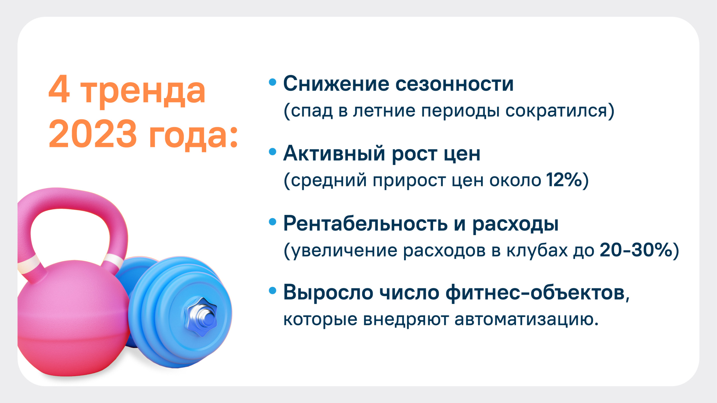 Проанализировав состояние фитнес-рынка в 2023 году, мы можем выделить следующие тренды: