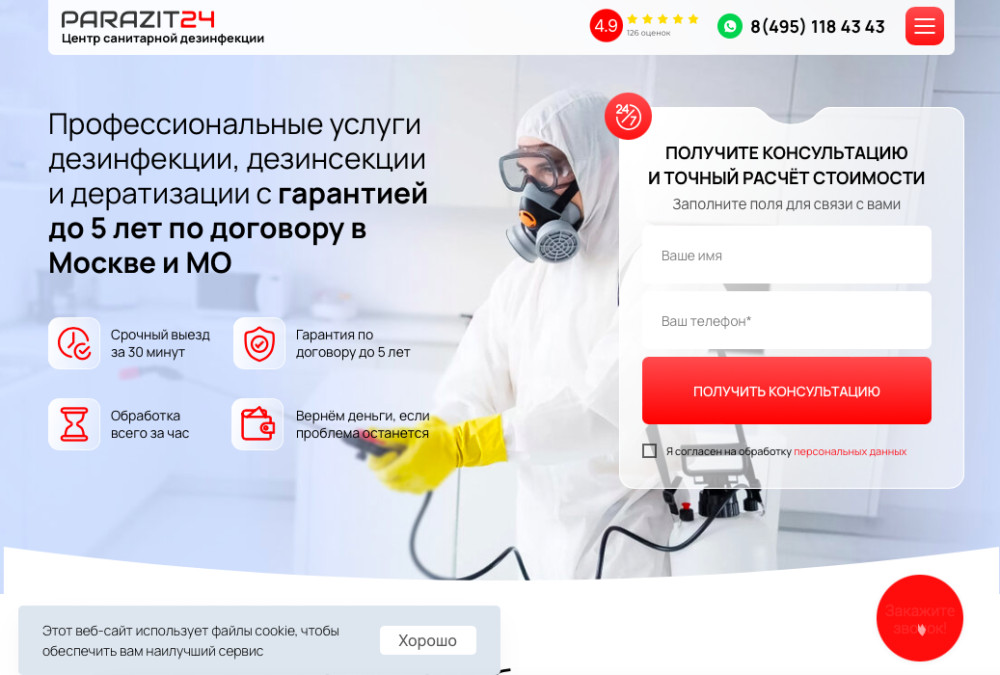 Компания Parazite24, занимающаяся дезинфекцией и устранением неприятных запахов в Москве и Московской области, обратилась с задачей оптимизации работы сайта. Требовалось, чтобы канал стал более продающим и эффективным.