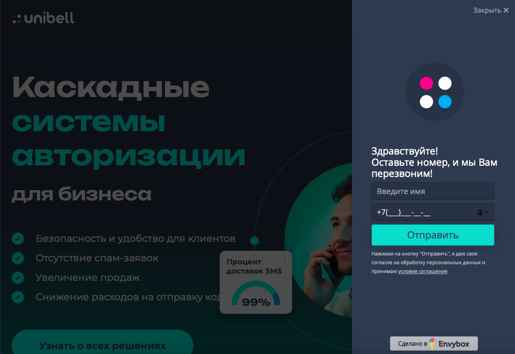После тестирования нескольких вариантов Unibell выбрала виджет Обратный звонок от Envybox. Ключевые факторы выбора: конкурентная цена, гибкая настройка под сценарии бизнеса и оперативная техподдержка, готовая сопровождать на этапе интеграции.