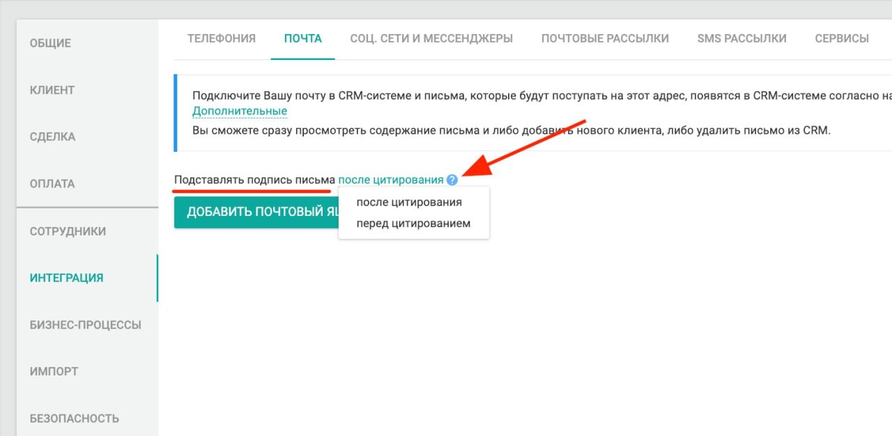 Настройка подстановки подписи при ответе на письмо в EnvyCRM