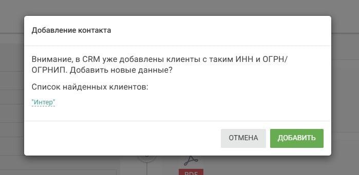 Проверка на дубли ИНН и ОГРН/ОГРНИП в карточке контакта EnvyCRM