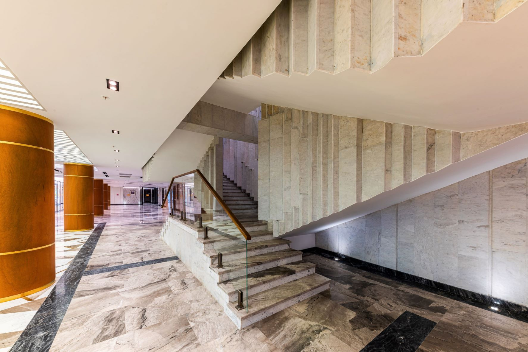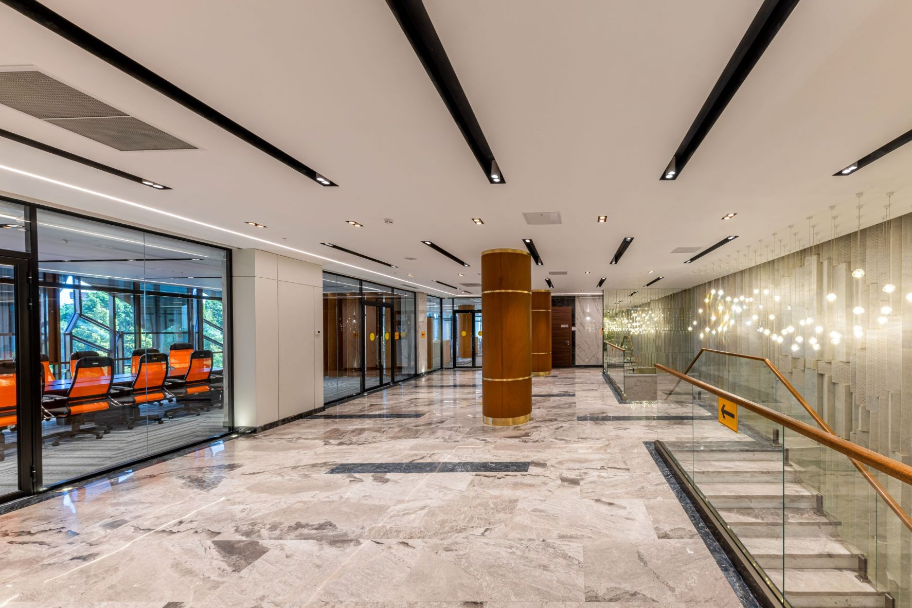 Необходимо было сделать здание более современным и комфортным в части планировочных решений. Для этого архитекторами были разработаны офисы open-space, просторные конференц-залы, вестибюль здания был сделан более светлым и просторным, благодаря применению современных отделочных материалов и световых технологий.