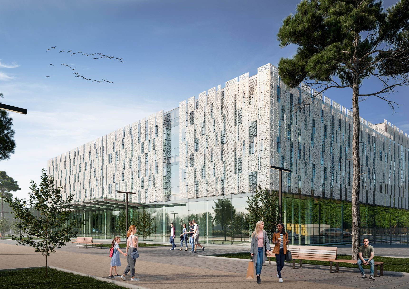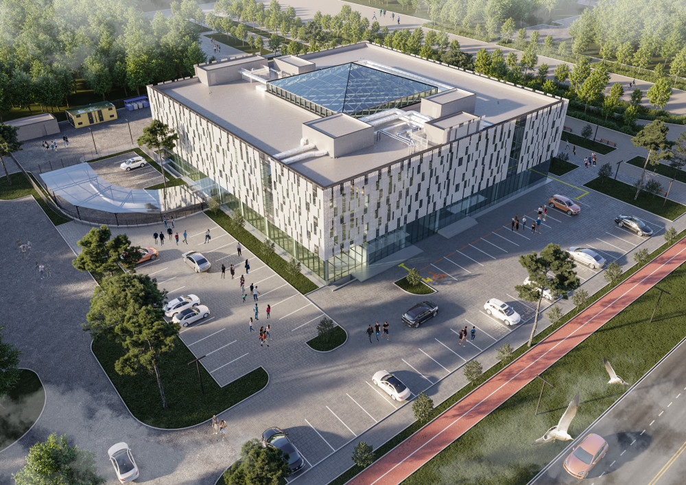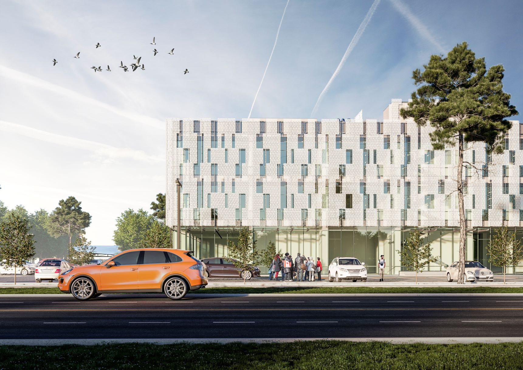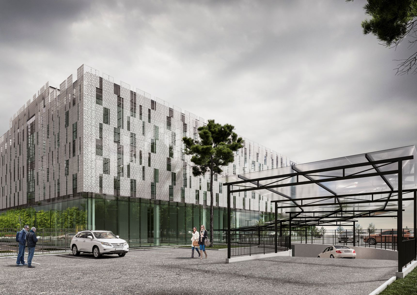 Фасады здания с применением солнцезащитных панелей рассчитаны на жаркие климатические условия южного региона.