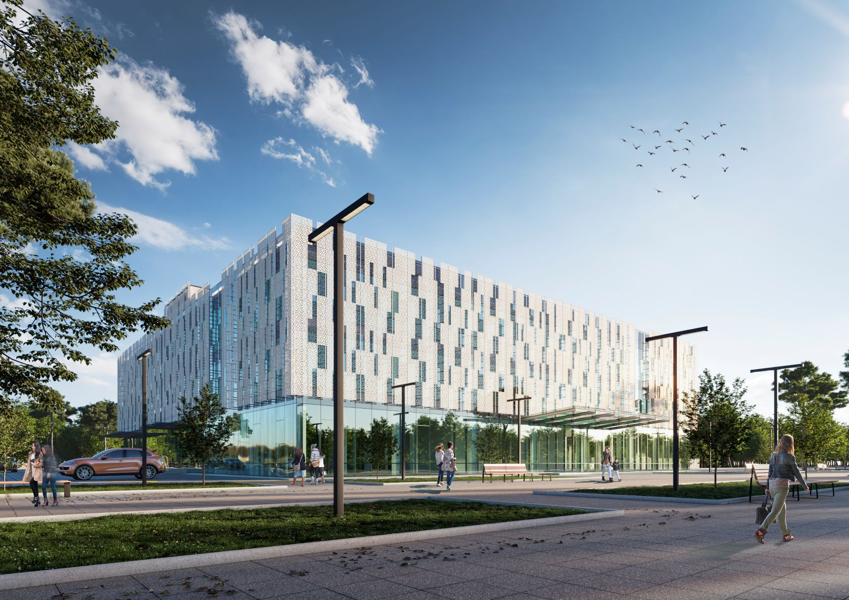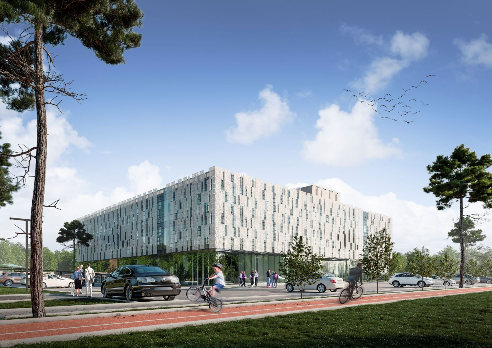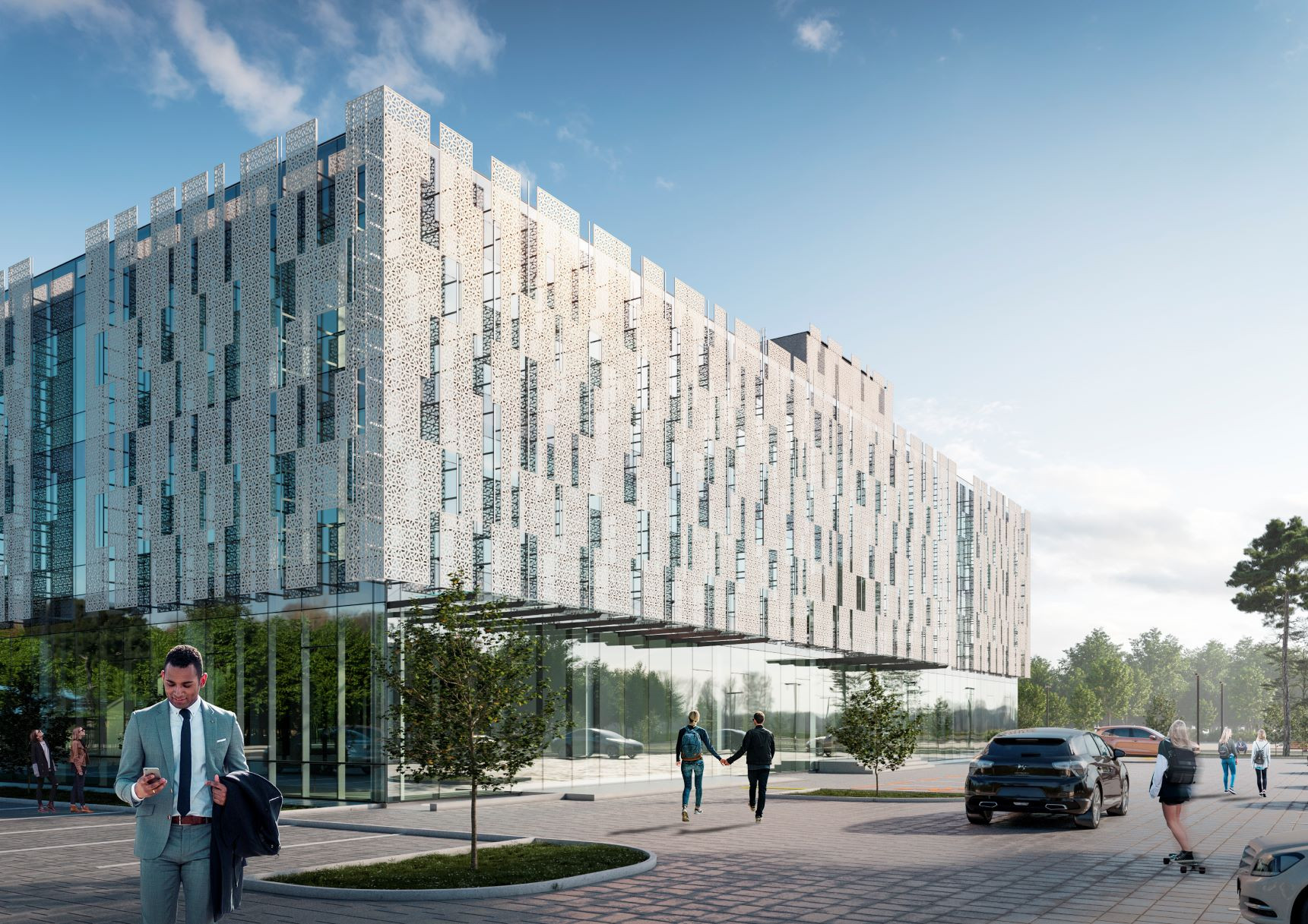 Фасады здания с применением солнцезащитных панелей рассчитаны на жаркие климатические условия южного региона.