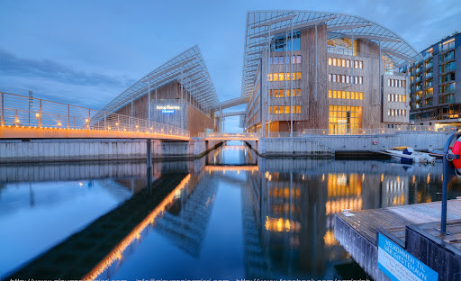 город соединен с Bjørvika пешеходным мостом Akrobaten, нависающим