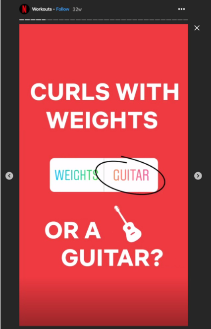 Вот хороший пример истории слайд-шоу от Munchies. На нем изображен один из их поваров, готовящий сырный гребешок из картофеля. Это единый рассказ, но он состоит из нескольких слайдов — как видео, так и фото. Слайды перемещаются автоматически без необходимости проводить пальцем по экрану. Если вы решили загрузить несколько слайдов в историю, используйте инструмент публикации в Instagram. Еще одна альтернатива для публикации более длинных видео — IGTV. Здесь вы можете публиковать видео продолжительностью до часа. Когда вы загружаете через приложение IGTV, видеоролики могут длиться не более 15 минут. Публикация пользовательского контента (UGC) может принести огромную пользу вашей учетной записи Instagram. Buffer, например, смог использовать UGC для увеличения количества подписчиков на 400%. Один из способов воспользоваться преимуществами UGC — создать историю с видео с вашими клиентами, рекомендующими ваш продукт. Хороший пример — история Варби Паркера. Это слайд-шоу, состоящее из клипов нескольких клиентов. В каждом ролике покупатели рассказывают вам, какое изделие Warby Parker они носят и что они делают. Кроме того, вы можете попросить клиентов использовать хэштег при публикации сообщений, содержащих ваш продукт. Вы можете просто выполнить поиск по хэштегу с помощью поиска в Instagram и найти упоминания. Примером может служить хэштег #wearingwarby от Warby Parker. Еще один способ использовать видео в ваших историях в Instagram — создать каталог продуктов. Это может быть отдельный клип или сборник. Пример — от Ben & Jerry’s: Они собрали историю слайд-шоу, в которой слайды демонстрируют видео с их вкусами мороженого. Они также добавили наложенный текст с просьбой «Смахнуть вверх». Когда вы это сделаете или нажмете «Подробнее>», вы перейдете на страницу продуктов, где сможете узнать больше. Это отличный способ увеличить продажи в Instagram. Посты «за кадром» всегда пользовались популярностью в социальных сетях, поскольку подписчики видят, как люди создают продукты, которые им нравятся. Поэтому регулярно публикуйте истории, которые знакомят с людьми, работающими в вашей компании, или видеоролики о том, чем ваши сотрудники занимаются на работе. Вы также можете поделиться видео с мероприятий. Вы можете проводить опросы с помощью Instagram Stories. Эти данные помогут вам лучше понять свою аудиторию и создать больше историй, которые они захотят посмотреть. Вы можете комбинировать видео и опросы для создания широкого спектра историй. Креативный пример — опрос от Netflix. Они назвали эту историю «Тренируйся с Кей Джей Апой». Здесь они провели серию опросов, чтобы выяснить, какие упражнения их последователи хотели бы, чтобы KJ, актер одного из их шоу, выполнял. Опрос длился 20 минут. После этого KJ пришлось провести тренировку, которую они выбрали. Как видно из этого опроса, они спросили, следует ли KJ делать сгибания рук с отягощением или с гитарой. Они обвели «Гитара», когда люди ее выбирали. Идея, которую вам обязательно стоит реализовать — это объединиться с влиятельными лицами для создания видеоконтента. Здесь вы можете попросить влиятельного человека создать клип о нем, используя ваш продукт, а затем опубликовать его как историю. Это стандартный способ заработка в Instagram. Если у лидера мнений более 10 000 подписчиков, вы также можете попросить его поделиться ссылкой на продукт в истории. Нет необходимости 