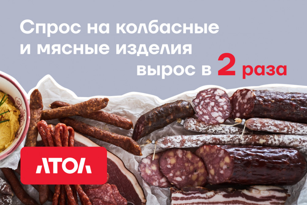 Аналитики АТОЛ провели исследование потребительского поведения на рынке продуктов питания в отношении мясных и колбасных изделий. По данным исследования, за январь-август 2023 года спрос на эти товарные группы вырос в 2 раза относительно аналогичного периода 2022 года.
