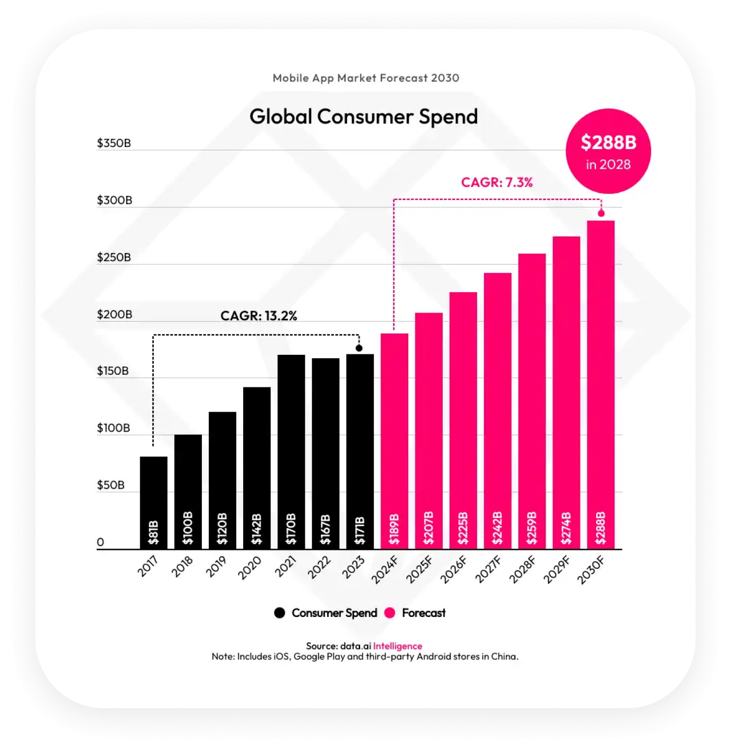 Чтобы это выяснить, команда Appbooster перечитала Mobile Market Forecast от Sensor Tower — он вышел в 2021 году и содержал прогнозы по развитию мобильной экономики до 2025-го. Мы сверили их с реальными данными, проанализировали новый прогноз аналитиков до 2030 года и теперь делимся выводами.
