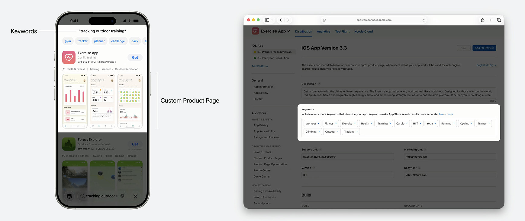 Например, для приложения по учёту финансов можно создать отдельную страницу под запрос «трекер расходов», и другую — под запрос «планирование бюджета». Для каждого сценария можно адаптировать скриншоты, промотекст и видео. Всё это настраивается в App Store Connect.