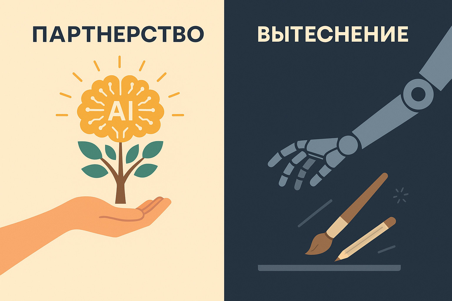 Наблюдение за прогрессом ИИ в течение нескольких лет, что им их используем, конечно, впечатляет, но не вводит в депрессию относительно скорой потери работы, как об этом думают многие. Да, в разных сферах такая угроза присутствует и вполне ощутима и ожидаема. Но не в сфере креатива, творчества и создания коммуникации. Уже сегодня видно, как люди наигравшись с нейросетями стали уставать от фальшивых текстов и картинок. Уверен — не за горами какой-нибудь нейро-детокс, тренд на живые фото и эмоции, ручную работу и т. д. А нейросетевой креатив и творчество станет чем-то нишевым и дешевым. В профессиональной же сфере, ИИ останутся верными помощниками и инструментами, которые помогут профессионалам делать свою работу лучше и быстрее, выдавая продукт, который не будет похож на нейромусор и избежит повсеместного разоблачения и хейта. Кажется что-то такое уже было в полунаучных утопических фантастиках. А может и в Симпсонах. Так или иначе — мир уже не будет другим. Американский Storyboard уже пишет, что бренды понимая, что ИИ ускоряет и удешевляет производство контента требуют снижения стоимости услуг агентств на 25%. Логика здесь есть, но она не до конца прозрачна. Да, ИИ что-то ускорил, но не снял ответственность людей за результат, за взвешенные решения, контроль над работой нейросетей и доведения ее до идеала. В больших проектах доля дорогой и экспертной работы все еще велика вряд ли, когда-то сильно снизится, как это и писалось выше. Поэтому по-настоящему серьезная работа брендингового агентства будет оставаться недешевой. Другое дело — выделение услуг на основе ИИ в отдельный пул, в котором прозрачно показано, что основную работу выполняет нейросеть. Работа людей в таких услугах сведена к возможному минимуму, но не исключена полностью — кто-то должен общаться с клиентом, готовить документы, отсеивать креатив ИИ и доводить его «ума». Именно так мы и поступили, чтобы оставаться честными и с собой и с клиентами и запустили отдельную услугу «ИИ-продакшн». Там мы предлагаем недорогой, быстрый, но качественный контент, потому что понимаем, что не для всех задач сегодня необходим полновесный продакшн с локациями, фото и видеооператорами. Вот как звучал промт: В последнее время все больше разговоров, что развитие искусственного интеллекта деструктивно влияет на брендинговые и рекламные агентства. Нейросети научились писать тексты, придумывать названия и даже стратегии, рисовать логотипы и разный визуальный контент. Кто-то не на шутку обеспокоен, что в недалеком будущем копирайтеры, иллюстраторы, дизайнеры и стратеги могут лишиться своей работы. Что ты думаешь по этому поводу? Напиши прогноз развития этой тенденции в России на 2026 год. В какую сторону будут развиваться нейросети, кого они смогут заменить, а кому станут помощниками? Пусть это будет два сценария развития: пессимистичный и оптимистичный. Отличный и очень своевременный вопрос — в России (как и в мире) разговоры о том, что генеративный ИИ «забирает» работу у креативщиков — идут полным ходом. Ниже дам сжатый, практичный прогноз на 2026 год в двух сценариях — пессимистичном и оптимистичном — и отдельно разберу, какие роли ИИ, скорее всего, заменит, а где он станет помощником. Везде, где это важно для вывода, привожу ссылки на свежие источники и наблюдения по рынку. Краткая отправная точка (ч