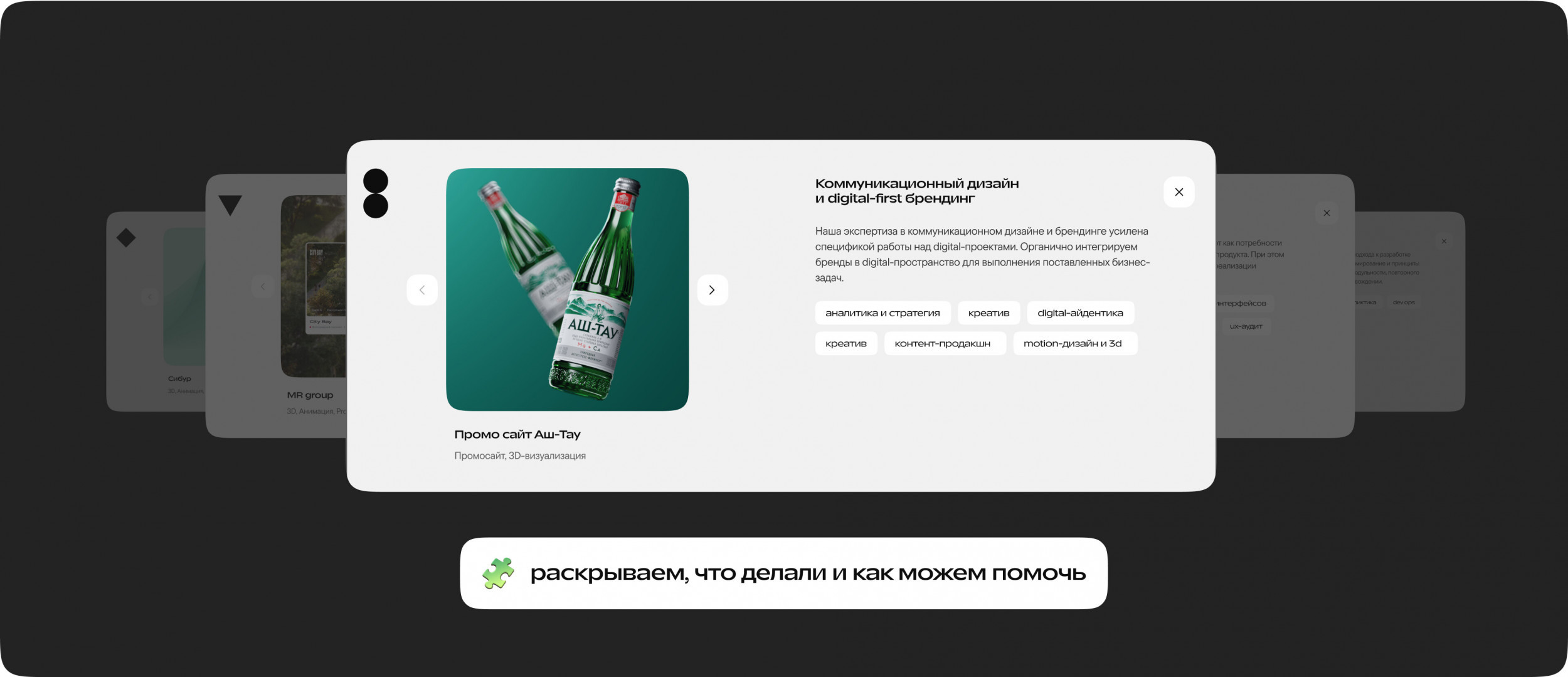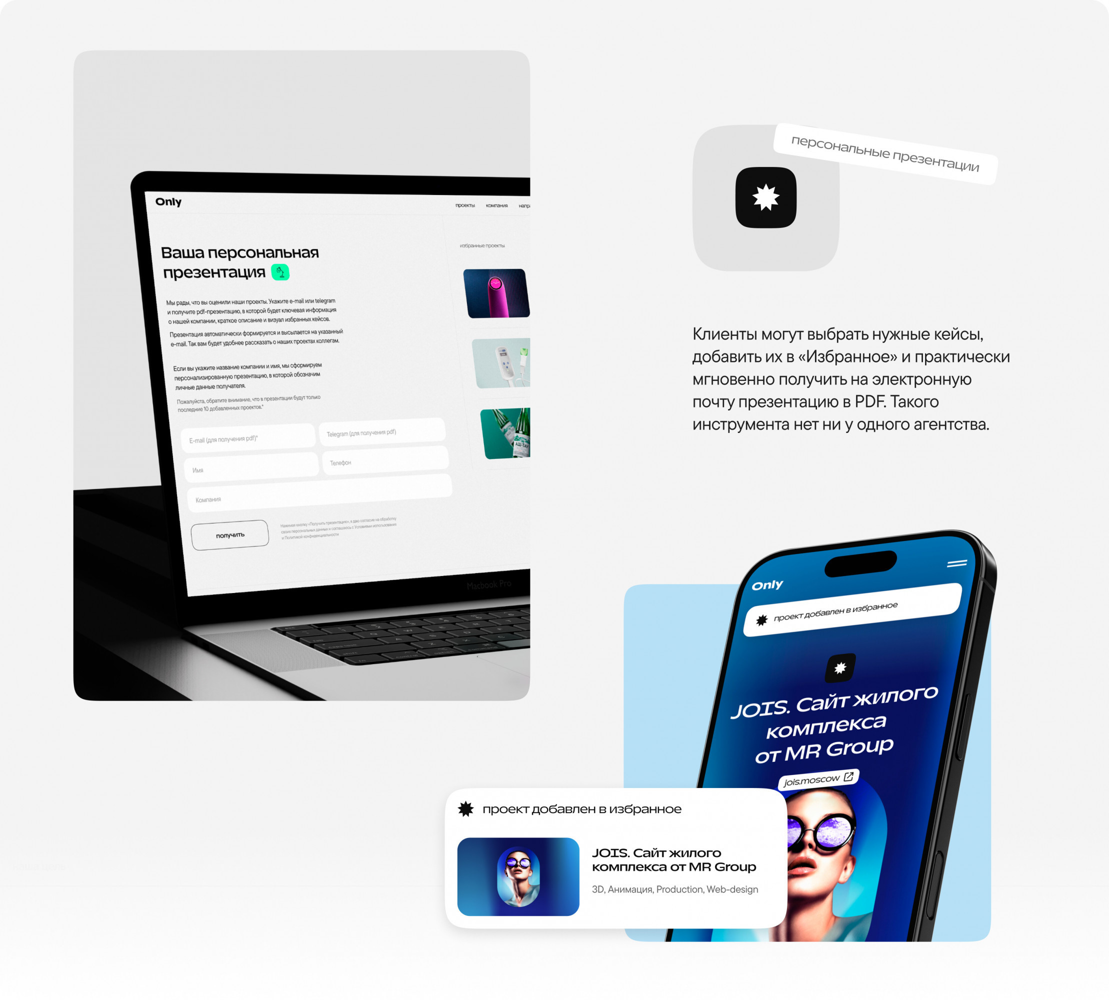 — Для клиентов: сайт помогает познакомиться с нашей экспертизой, изучить направления, посмотреть портфолио, сохранить кейсы, скачать материалы и оставить заявку.