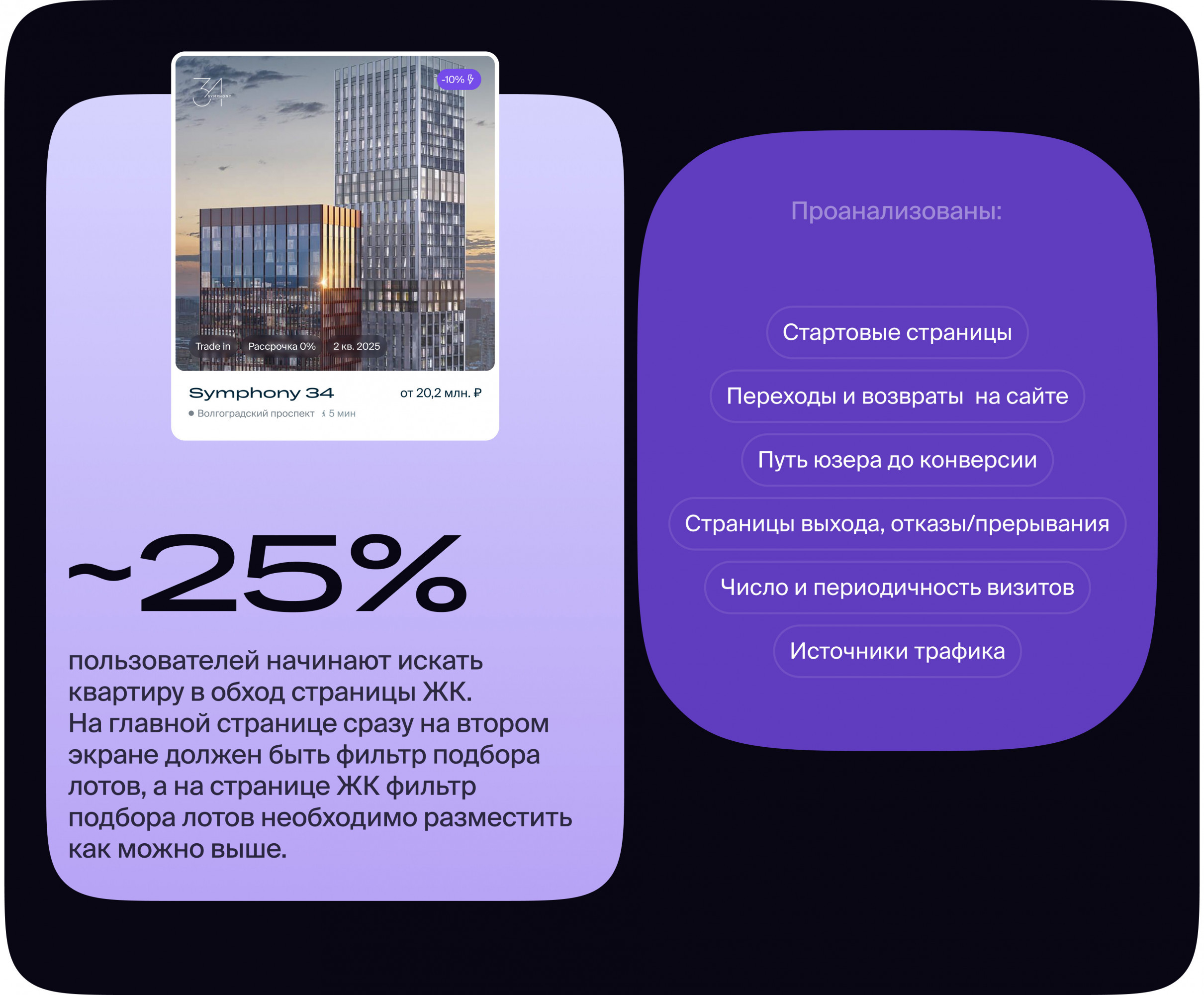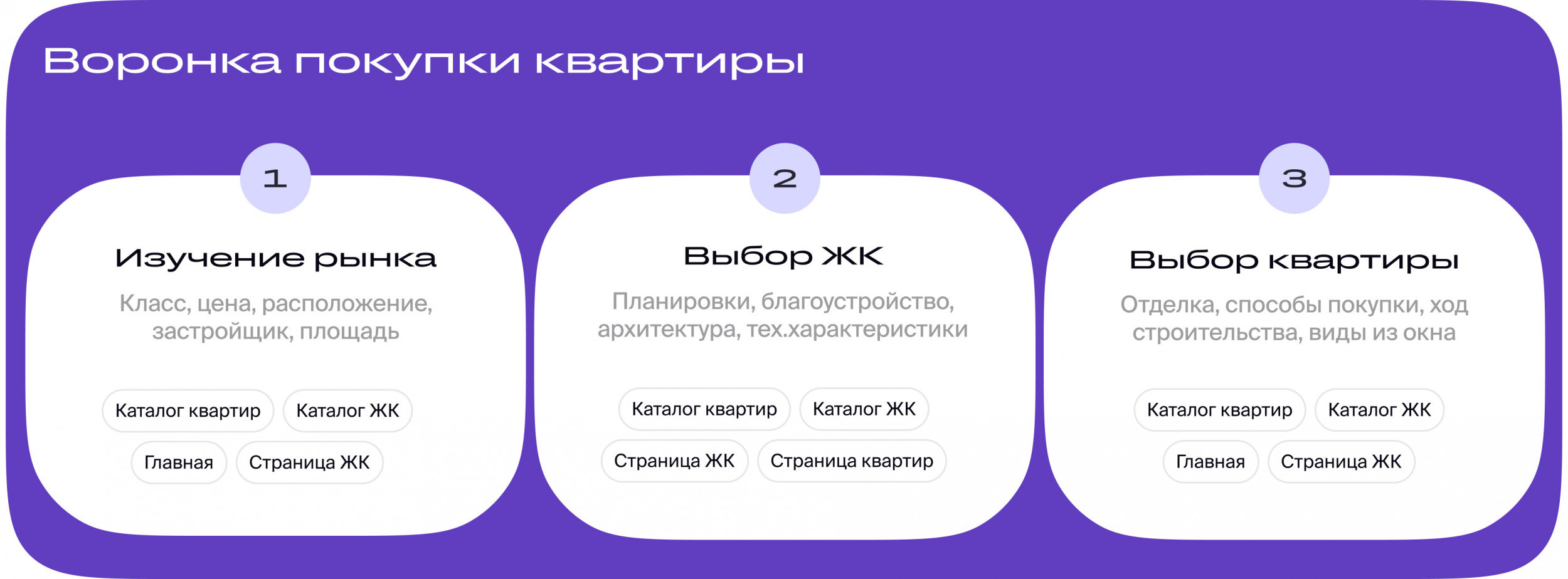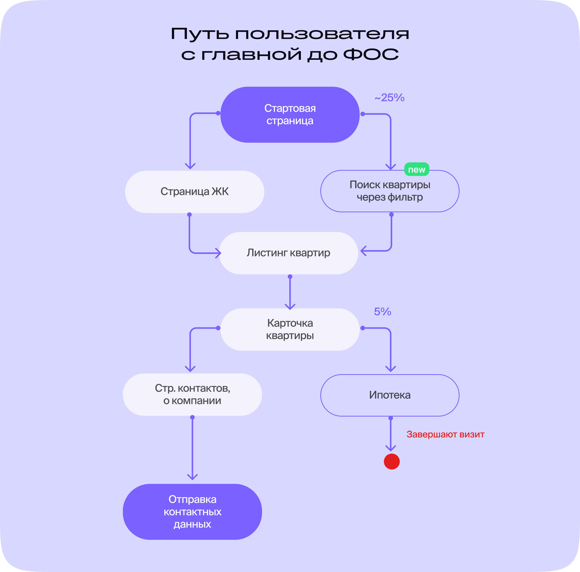 Во-вторых, перед нами стояла задача улучшения пользовательского пути. Требовалось переосмысление корпоративного сайта в сторону «маркетплейса недвижимости».