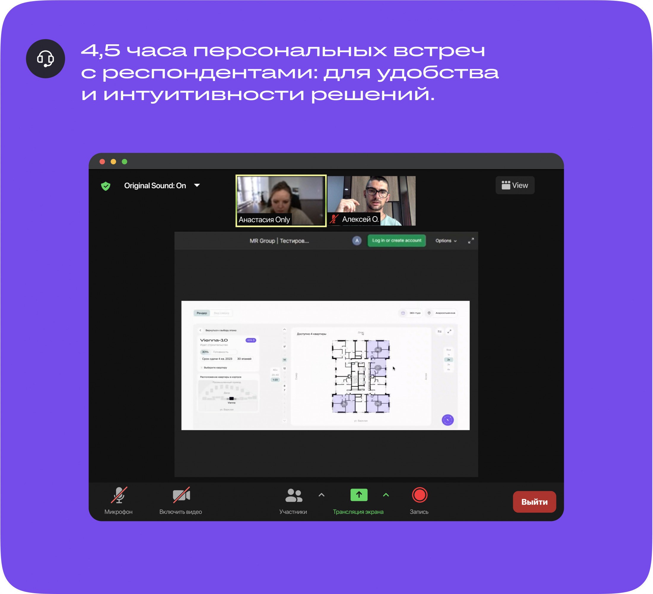 — 10 UX-тестов. Для проверки гипотез и тестирования основных целевых путей проводили модерируемое UX-тестирование с участием реальных клиентов MR.