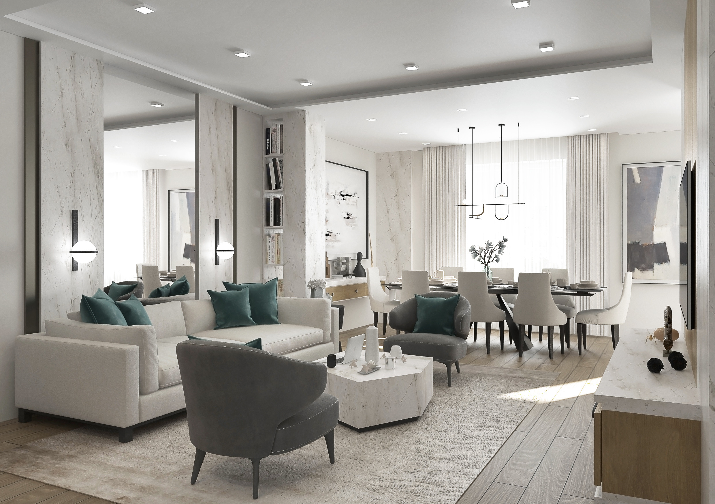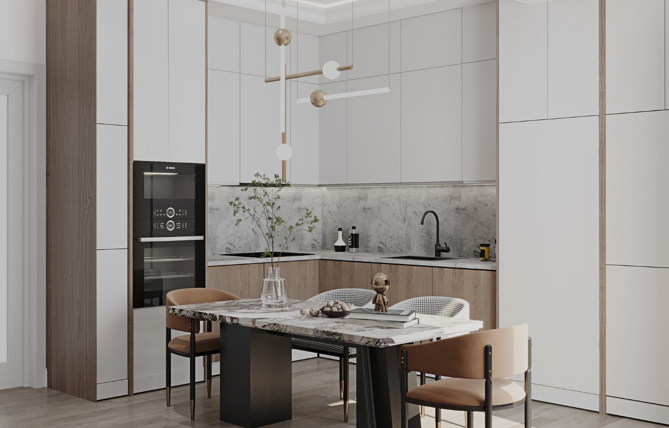 Кухонный гарнитур теперь не просто «мебель», а часть архитектурной композиции. Текстуры, линии, материалы, подсветка — всё продумывается до мелочей, чтобы кухня не выпадала из общей идеи интерьера. В дорогих проектах это чаще всего — акцентная зона, которая запоминается. В одном из наших недавних проектов мы спроектировали кухню с большим островом из светлого мрамора. Он визуально расширяет пространство и стал местом, где семья теперь часто собирается. Всё — от встроенных шкафов до подсветки — создает ощущение порядка, легкости и уюта. А в другом проекте кухня-гостиная с панорамными окнами буквально залита светом. Фасады отражают свет, остров стал своеобразной сценой, а подвесной светильник над ним — акцентом, который задает настроение вечера. Сегодня кухня — это не просто про еду. Это про жизнь. Про комфорт, эстетику, ритмы дня и настроение. Хорошо спланированная кухня — это пространство, где удобно, красиво и тепло. Где хочется собираться, делиться новостями, устраивать ужины и просто быть рядом. Когда кухня перестает быть «бытовкой» и становится частью общего пространства, она начинает работать по-другому — она объединяет. А в хороших домах именно это и важно.