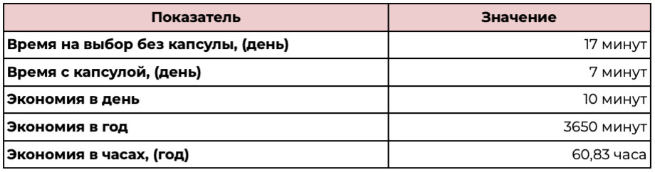 Грамотно подобранная одежда экономит время на сборы и избавляет от ощущения «нечего надеть». Без капсулы на подбор наряда уходит в среднем 17 минут в день, тогда как с ней — всего 7 минут, благодаря заранее продуманным сочетаниям. Так у женщин остается больше времени на укладку и макияж. Таким образом, капсульный гардероб помогает экономить до 28% средств на одежду и сокращает время сборов почти на 10 минут в день. Все цены анализировались на основе открытых данных популярных российских фэшн-брендов премиум-сегмента. Эксперты бренда отмечают, что при создании капсулы важно учитывать сочетаемость одежды: каждая вещь в гардеробе должна комбинироваться как минимум с двумя другими, чтобы было легко составлять образы.
