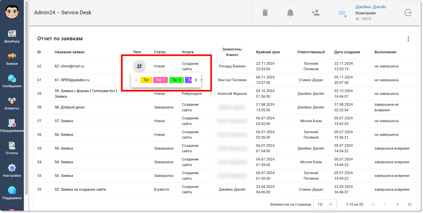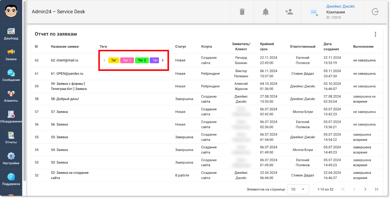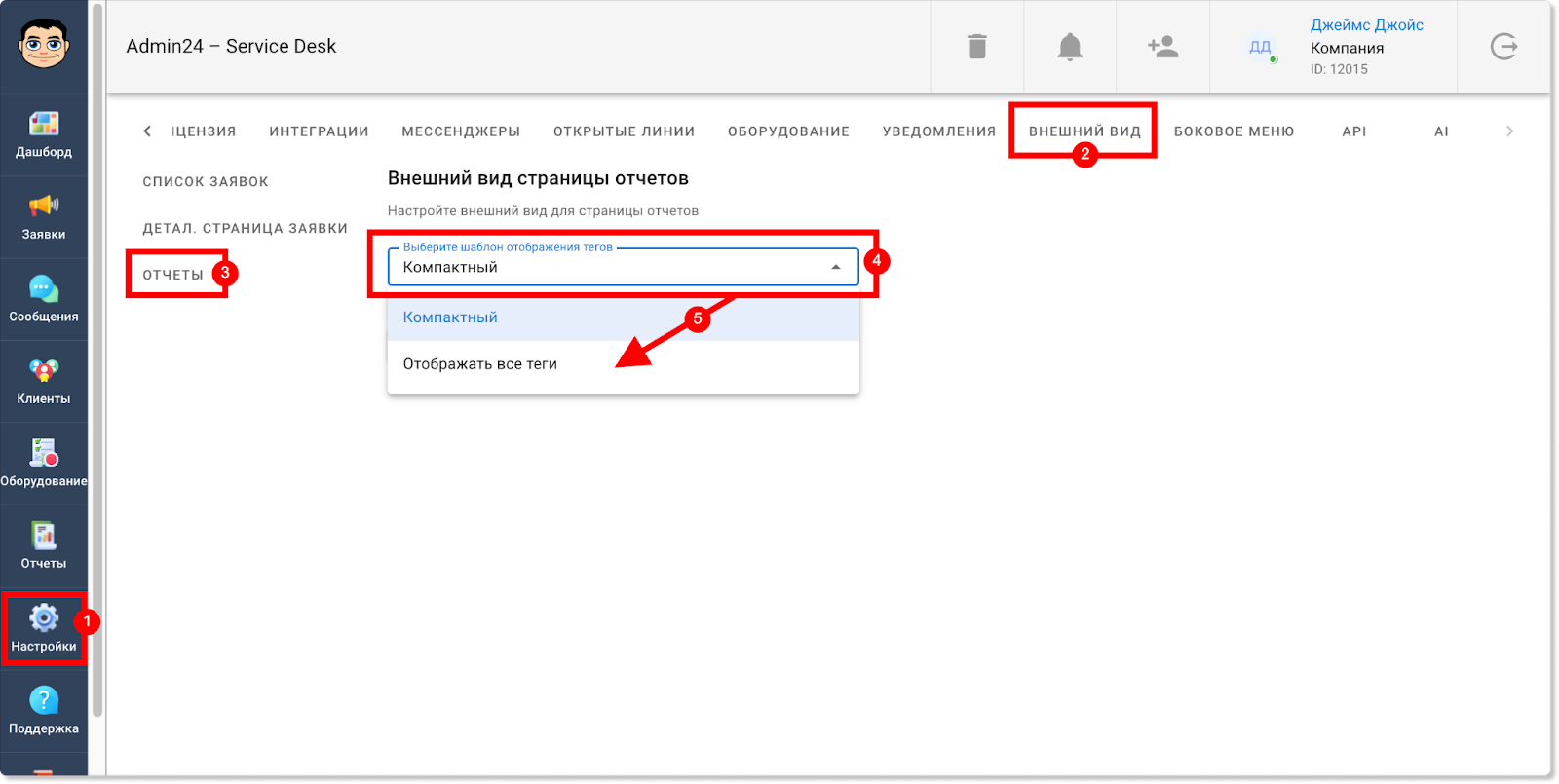 Добавлена настройка для отображения тегов в развернутом виде в отчете по заявкам