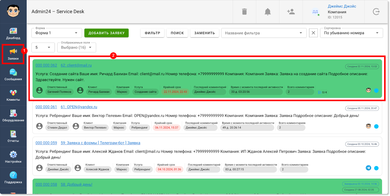 Для этого в разделе «Заявки» откройте нужное обращение.