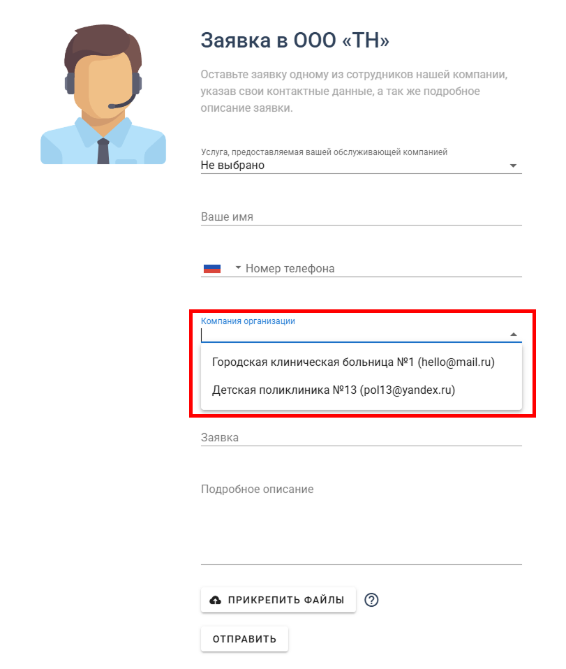 Назначение ответственного для компаний в форме с полем выбора компаний
