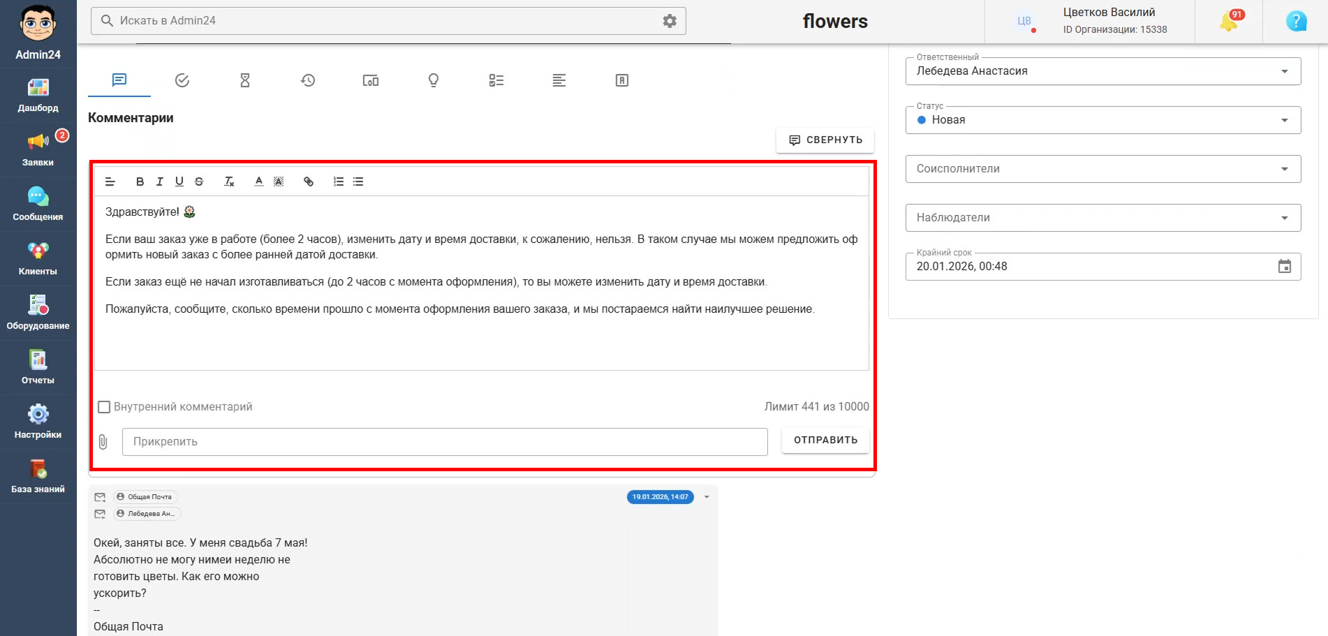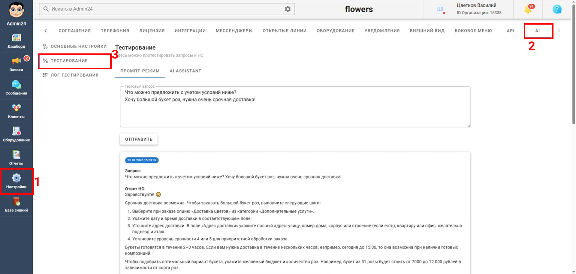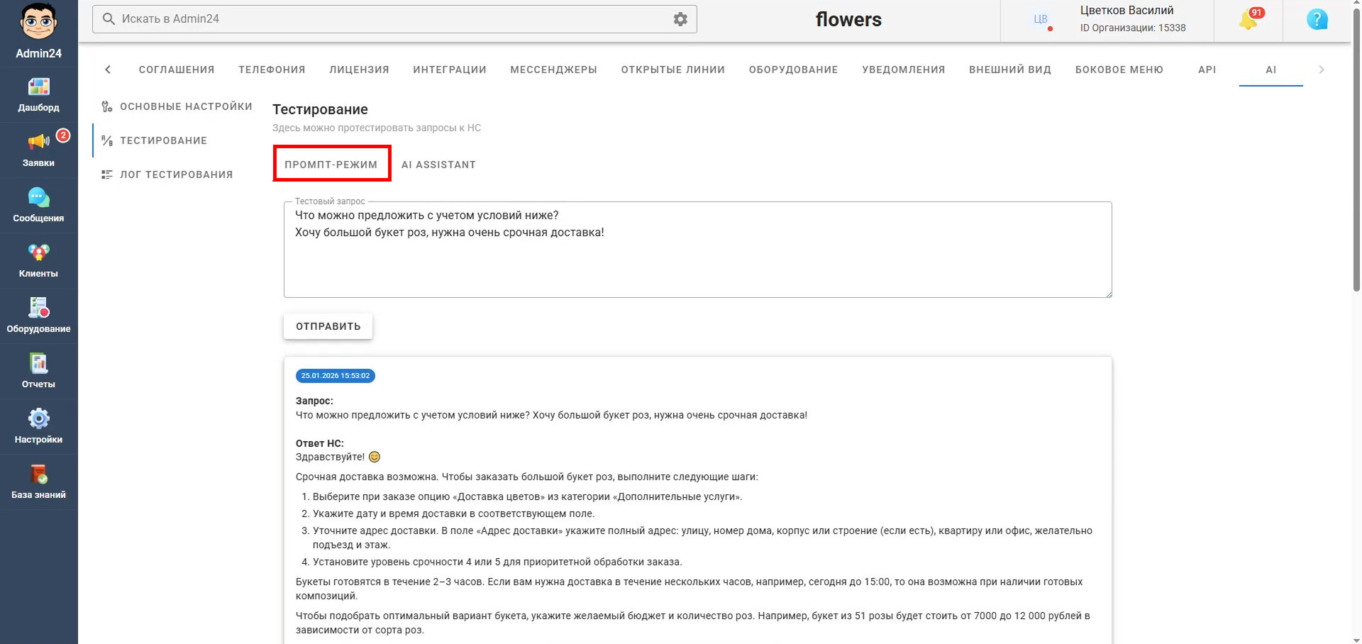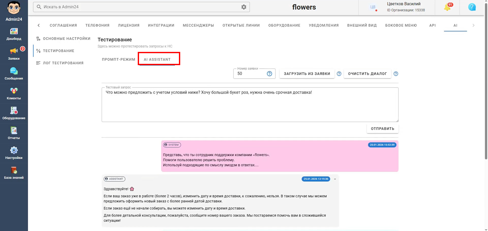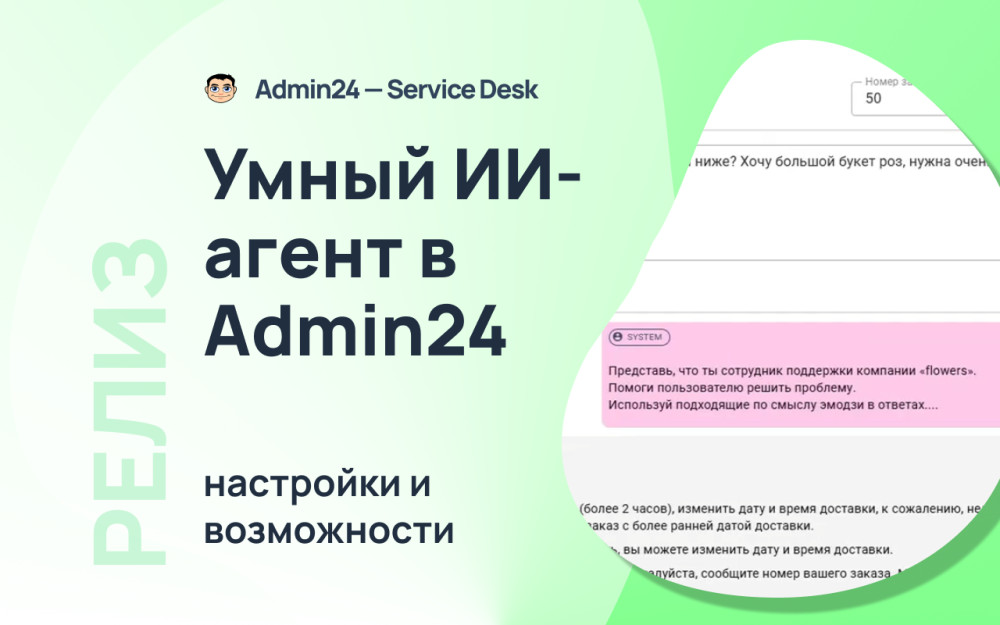 В очередном обновлении Admin24 был улучшен ИИ-агент — инструмент, который анализирует обращения клиентов и предлагает готовые варианты ответов. ИИ-агент помогает ускорить обработку заявок, снизить нагрузку на сотрудников и сохранить единый стиль коммуникации с клиентами.