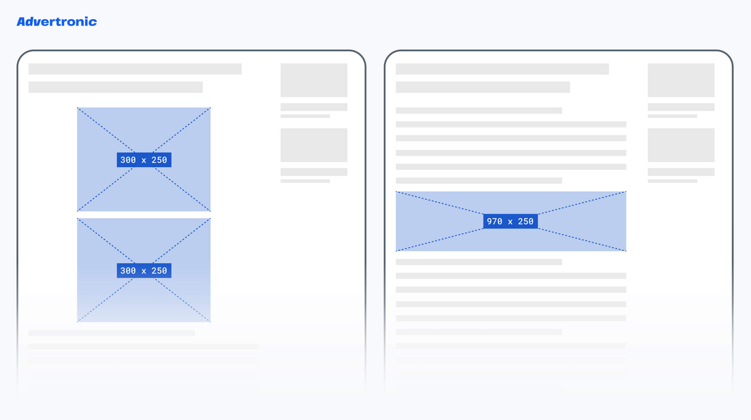Advertronic, сервис по монетизации сайтов, сравнил две стратегии раскладки. Проверяли привычные плейсменты: сайдбар, блоки в контенте и хедер, как на desktop, так и на mobile, в вертикальных и горизонтальных форматах.