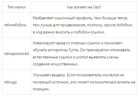 С 2019 года для обозначения бэклинков применяют три атрибута — «nofollow», «sponsored» и «ugc». Каждый усиливает свое значение оператора. Рассмотрим, в каких ситуациях подходит каждый из тегов.