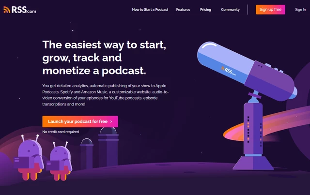 RSS.com — отличный инструмент для размещения, управления и монетизации подкаста. У платформы приятный дизайн и продуманный UX/UI, поэтому разобраться будет легко. Хостинг платный, но, если переезжаете на RSS.com с другой платформы, предоставят 6 месяцев размещения бесплатно.