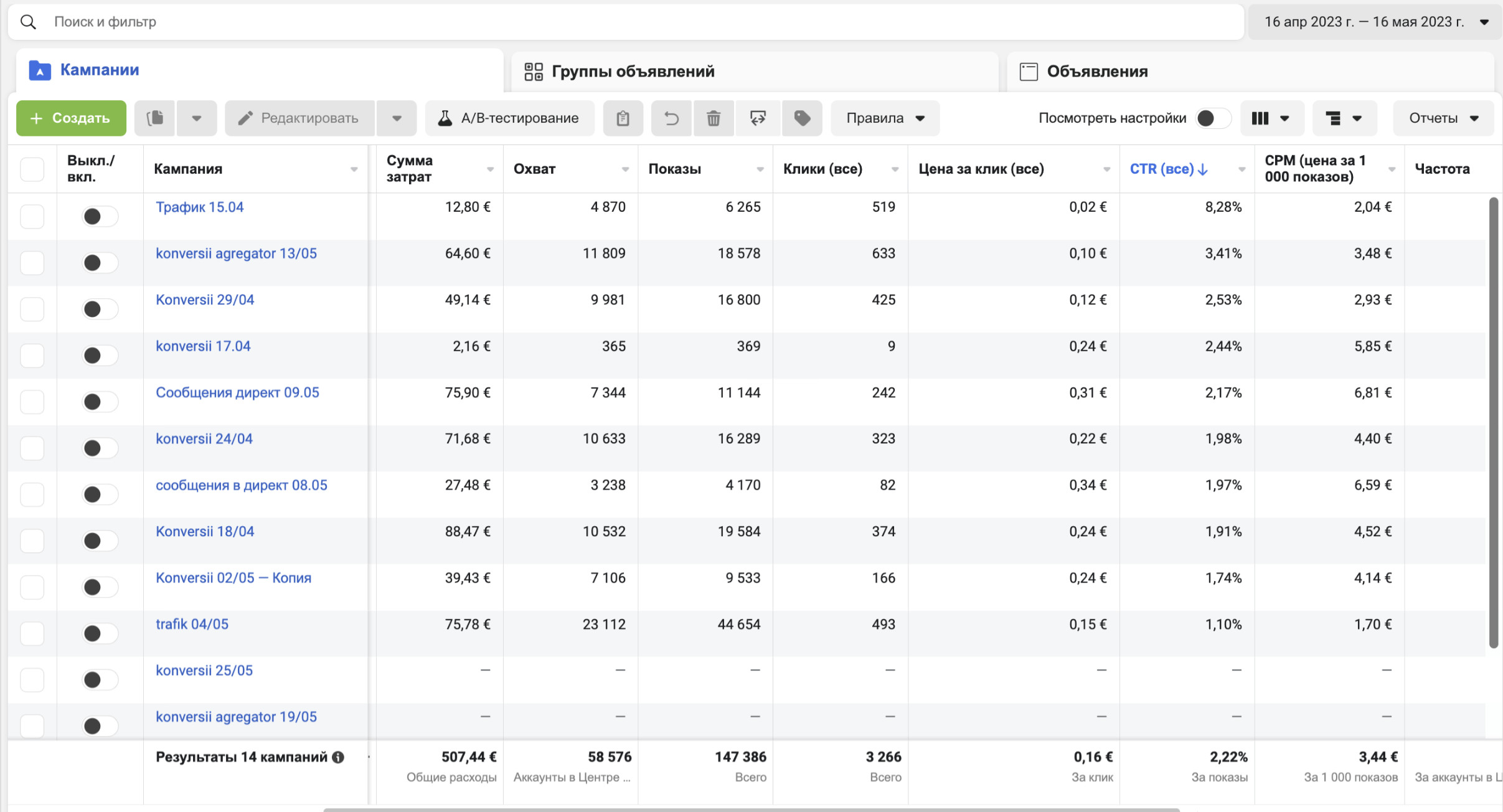 Первая кампания была запущена с целью трафик для прогрева РК.