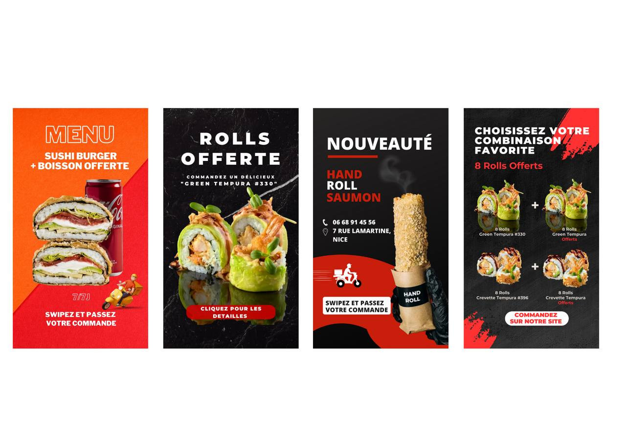 Когда ты продвигаешь еду, то здесь большую роль играют рекламные креативы. Твоя задача создать такой макет, после просмотра которого еще несколько последующих сторис человек будет думать о роллах, которые ты рекламировал.