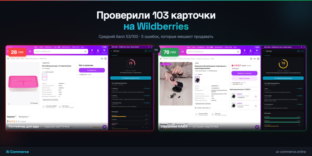 Проверили 103 карточки на Wildberries. Средний балл 53 из 100. Вот 5 ошибок, которые мешают продавать