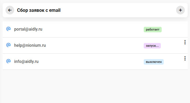 Ранее портал собирал заявки от пользователей только с адреса portal@aidly.ru. Теперь организация может добавить неограниченное количество своих email-ящиков для сбора заявок.
