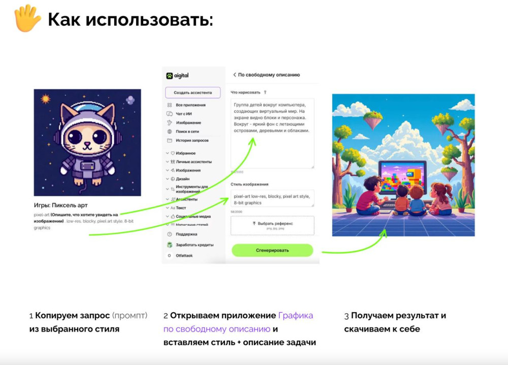 На этой странице вас ждут готовые запросы и примеры изображений. Пробуйте творить в новых стилях, создавая крутые визуалы за минуты!