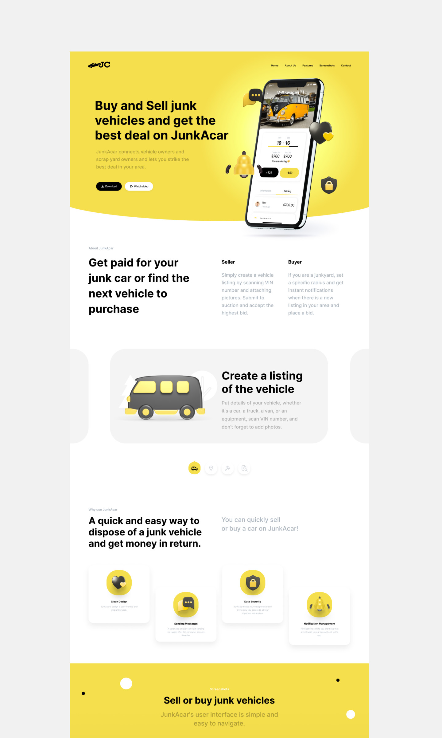 Junk A Car — американский стартап, который делает сервис по продаже подержанных автомобилей на утилизацию через онлайн-аукцион. Задача сервиса — объединить на одной площадке владельцев автосвалок и владельцев старых машин для организации покупок и продаж. Сервис зарабатывает на комиссии с продаж.