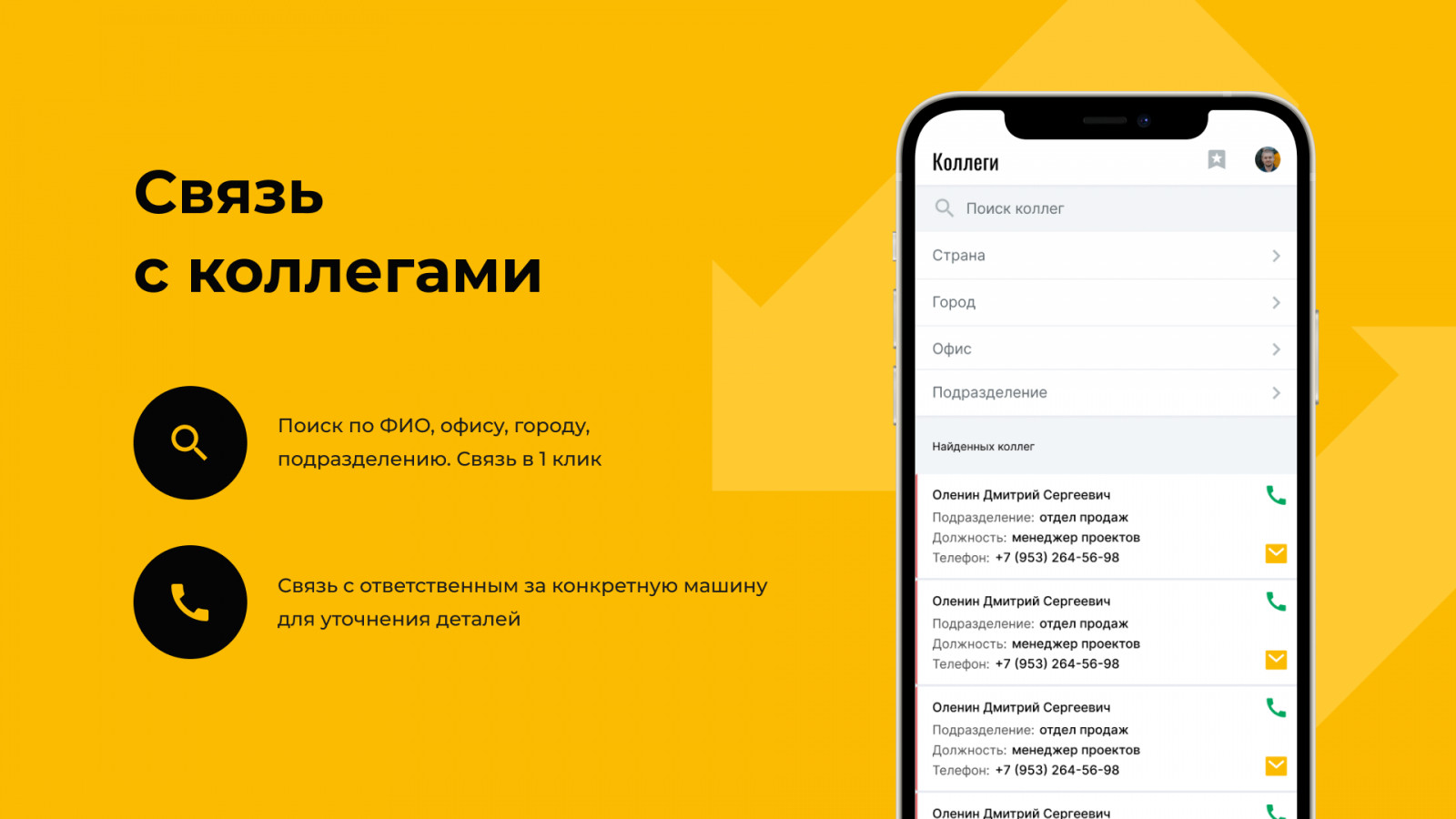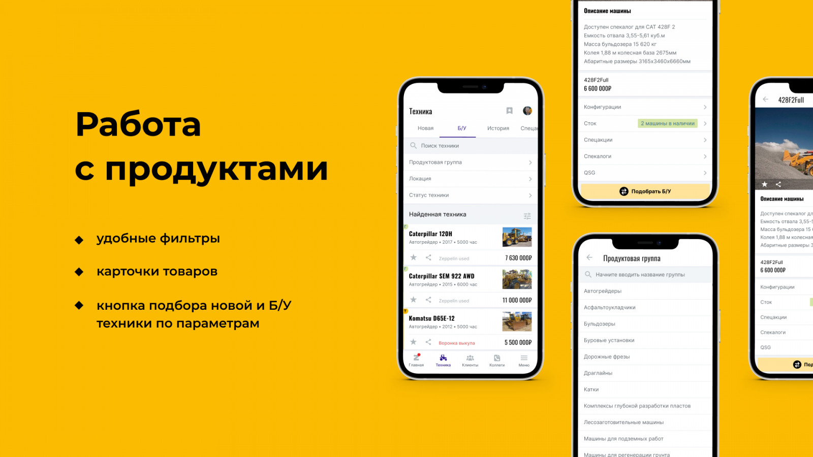 Приложение помогает найти специалистам по продажам нужную информацию, быстро подобрать нужную модель спецтехники по характеристикам, связаться с коллегами и сформировать коммерческое предложение. Приложение повышает лояльность и продуктивность сотрудников.