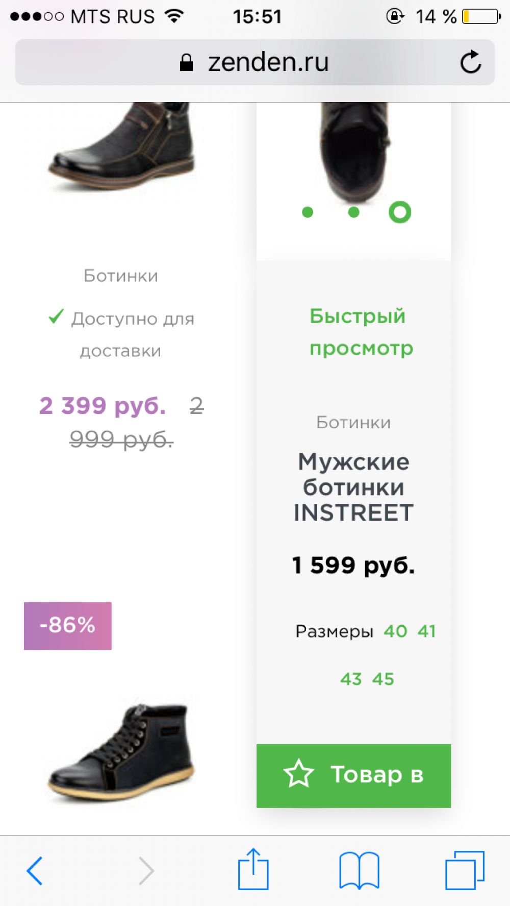Пользователь всегда понимает, какой следующий шаг он может сделать. Пользовательские сценарии проработаны таким образом, чтобы до нужного товара можно было дойти самым коротким путем — в 1-2 клика.
