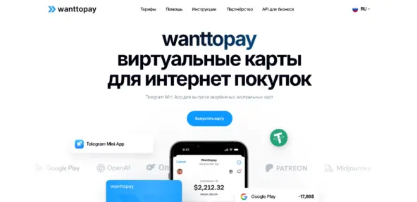 🏆4. Виртуальная иностранная карта WantToPay под любые покупки