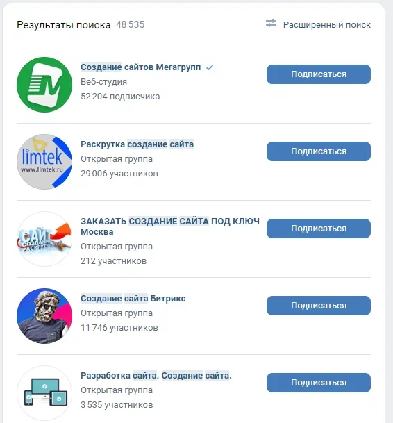 Ниже график, который показывает влияние числа посадочных страниц на лидогенерацию. Когда вы выбираете фен, совершенно необязательно знать, кто основатель компании и какие сотрудники работают у него в штате. Другое дело, если вы выбираете бизнес-подрядчика. Возможность увидеть людей, с которыми придется работать, поможет сформировать доверие к вашей компании. Полезно показать ключевых сотрудников, кратко рассказать об истории компании, ее миссии и ценностях. Ниже хороший пример страницы «О нас». Короткое и понятное описание плюс фото живых людей — никаких офисных планктонов из Shutterstock. Соцсети — инструмент, который дает продажи даже без инвестиций в рекламу. В B2B он лучше всего работает для компаний, которые оказывают услуги в диджитал. Например, для всевозможных агентств: пиар-, ивент- и маркетинговых. А еще для тех, кто предлагает курсы повышения квалификации сотрудников или разрабатывает софт для увеличения продаж. Таким бизнесам точно имеет смысл продвигаться в Инстаграм* и ВКонтакте. И даже не обязательно вкладываться в рекламу: в этих соцсетях прекрасно работают принципы SEO-оптимизации. Если вы введете название любой услуги в сфере B2B, увидите, что в поиске ранжируются аккаунты компаний и фрилансеров, которые ей занимаются. На основе каких именно факторов формируется выдача — неизвестно. Ссылочный вес в соцсетях не учитывается, количество подписчиков тоже не главный фактор. Доподлинно ясно лишь одно — выдачу формируют алгоритмы соцсети. Чтобы им понравиться, стоит следить за показателем engagment rate, постить в основную ленту хотя бы раз в неделю (а в сторис лучше каждый день) и иметь хотя бы 200-300 подписчиков. Если не знаете, откуда их взять на старте, советуем почитать, как накрутить подписчиков. В этом случае инструмент использовать допустимо. Принципы поискового продвижения работают и во ВКонтакте. Легко догадаться, что названия сообществ ниже адаптированы под частотные поисковые запросы. С диджитал разобрались, но как быть заводу сталолитейных сплавов? Искать клиентов во ВКонтакте и Инстаграм* такому бизнесу смысла не имеет. Но можно попробовать TenChat — российскую соцсеть, созданную специально для B2B. Инструменты соцсети, как минимум, любопытны. Можно искать объявления о госзакупках и участвовать в торгах по банкротству. Интерфейс обеих функций очень напоминает Tinder. Только свайпать придется не девушек, а госконтракты. Стоит протестировать. *Meta Platforms Inc. (соцсети Facebook*, Instagram*) признана экстремистской, ее деятельность запрещена на территории России.