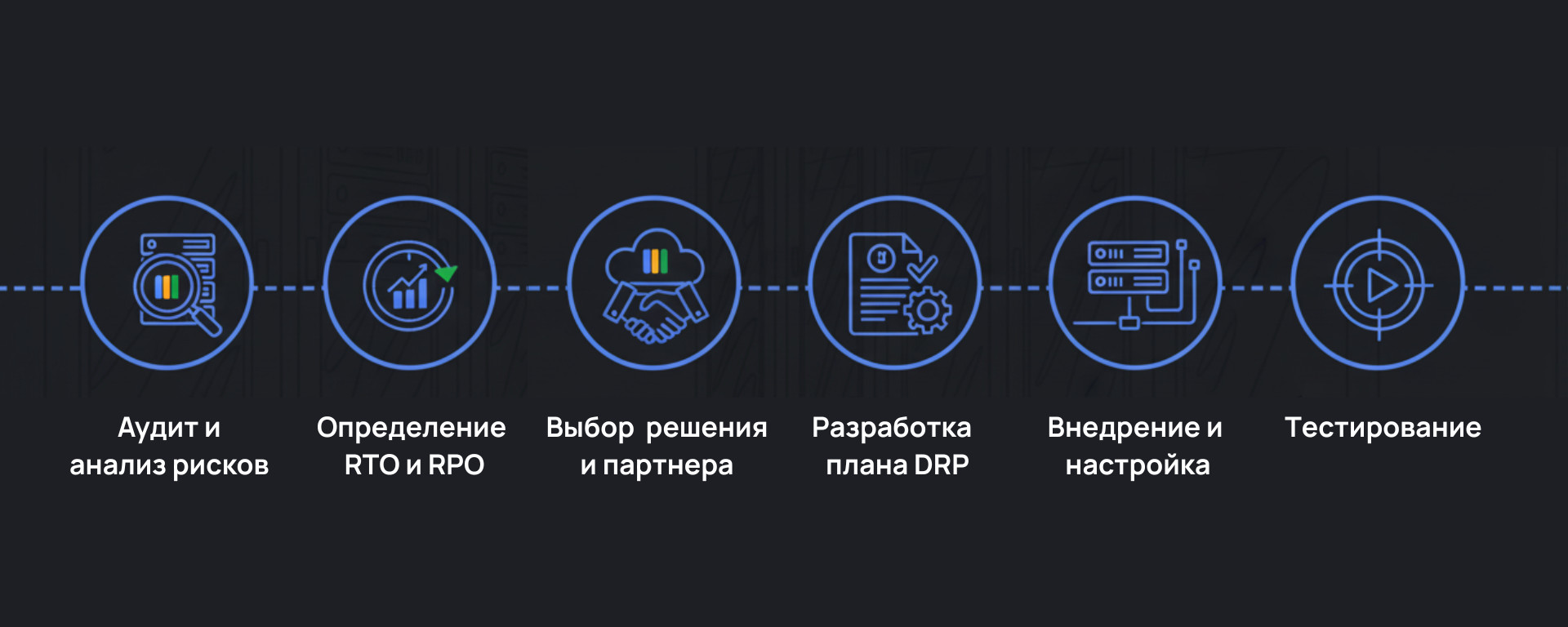 - Комплексный подход: аудит, разработка, тестирование и сопровождение DRP.