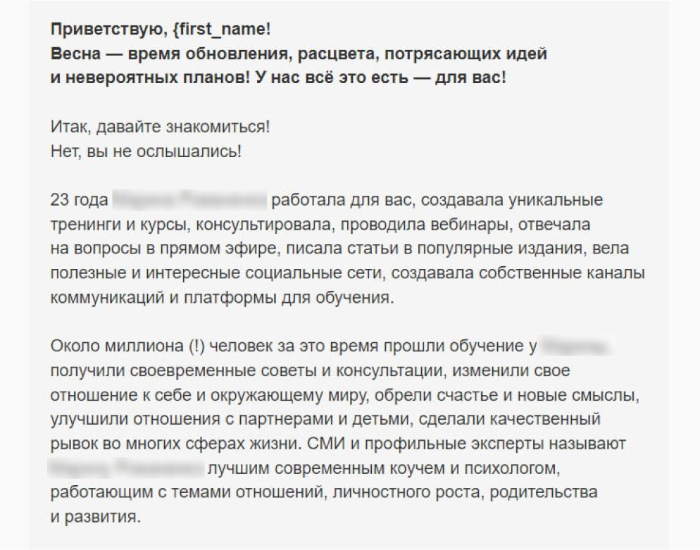 - Во-первых, если предложение в письме позиционируется как эксклюзивное, адресат увидит, что это неправда. Ведь такое же получили и другие люди.