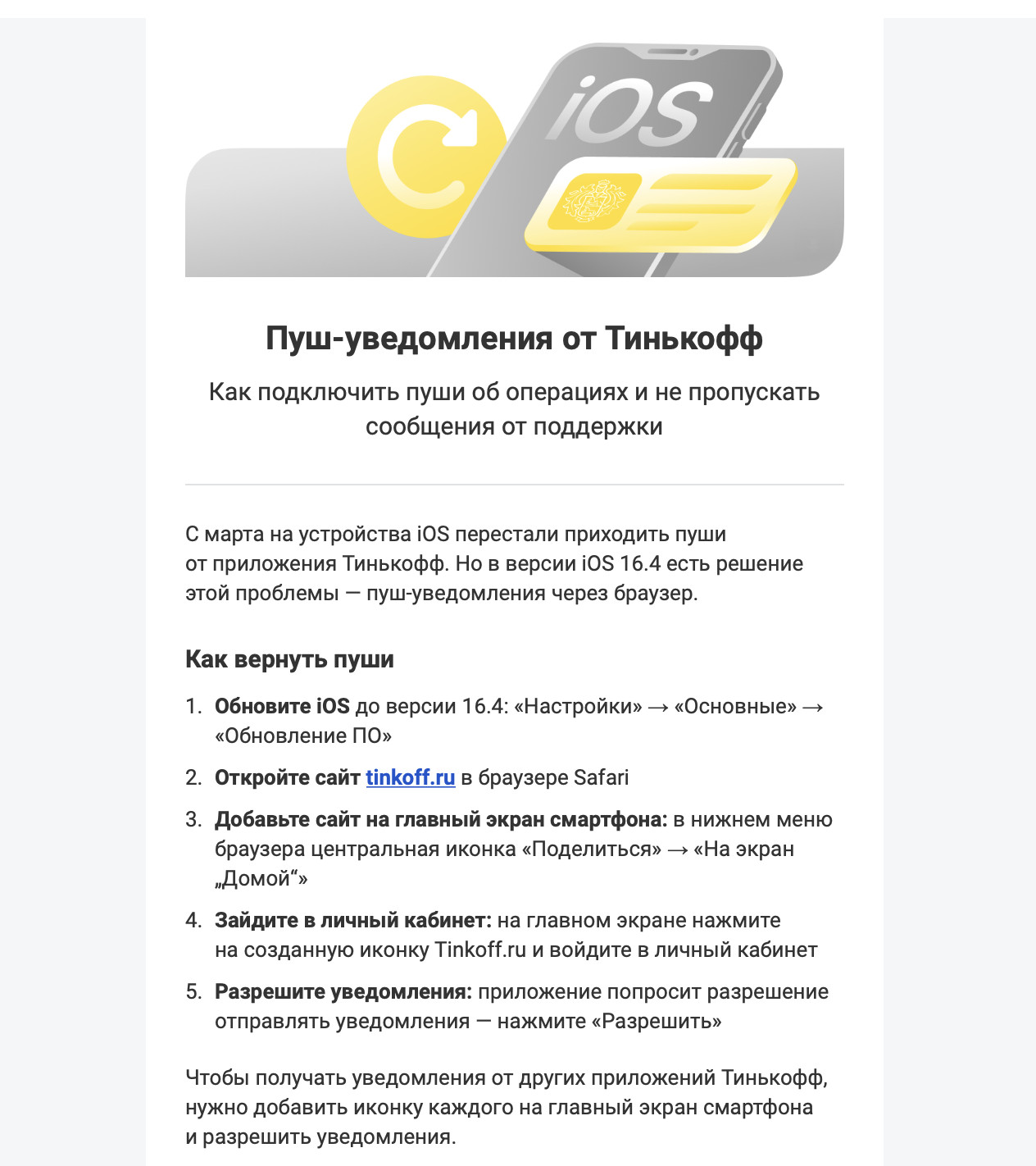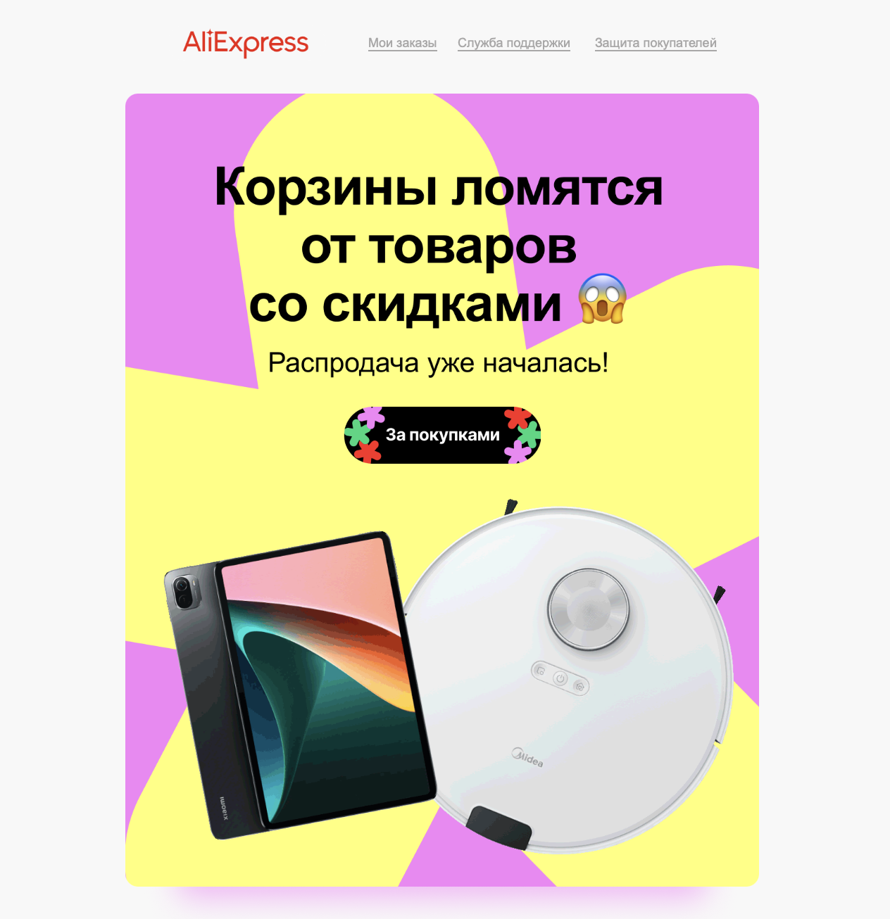 Проморассылка о распродаже AliExpress ярко и просто сообщает, что на сайте появились товары со скидками. Письмо от «Яндекс.Плюс» приглашает пользователей выполнять задания и получать бонусы. Ироничная ситуация рассылка от «Госуслуг». По картинке в email сразу видно, о какой новости хочет сообщить сервис, и сразу появляется мотивация прочитать до конца. Ещё это пример сегментирования аудитории — письма отправляются только тем людям, которые проживают по определённому адресу. Информационная рассылка от «Тинькофф» сообщает, как решить возникшую проблему с Push уведомлениями на IOS. «Мегаплан» присылал письма пользователям, чтобы провести исследование. В рассылке опрос про отношения с коллегами. «Справочная» отправляет email c полезными материалами — это пример контентной массовой рассылки. «Альпина Паблишер» сообщает подписчикам о запуске своего образовательного проекта — это информационное письмо. После подписки на сервис VPN пользователь получает триггерный email о подтверждении действия с подробностями. Любой чек по оплате товаров и услуг — пример транзакционной массовой рассылки. Такие делает платформа ОФД. Массовая рассылки — метод коммуникации с большой аудиторией через отправку email на несколько сотен и тысяч людей. Так бренды увеличивают продажи, повышают узнаваемость, информируют пользователей об изменениях и проводят исследования. К типам массовых рассылок относят промо, триггерные, информационные, контентные, транзакционные, письма с опросами, email для онбординга и ситуативные. При отправке большого количества писем есть риск оказаться в спаме, поэтому рекомендуется отслеживать репутацию домена, оставлять пользователю возможность отписаться, рассылать сообщения только по своей базе и увеличивать объём email постепенно. Чтобы повысить эффективность массовой email-кампании рекомендуется персонализировать письма, проводить реактивацию подписчиков, не продавать сразу, анализировать результаты и использовать сервисы для автоматизации. Подписывайтесь на наш телеграм-канал. Там вы найдёте актуальные новости в области digital-маркетинга, полезные статьи и интересные исследования. Будьте в теме вместе с нами :)