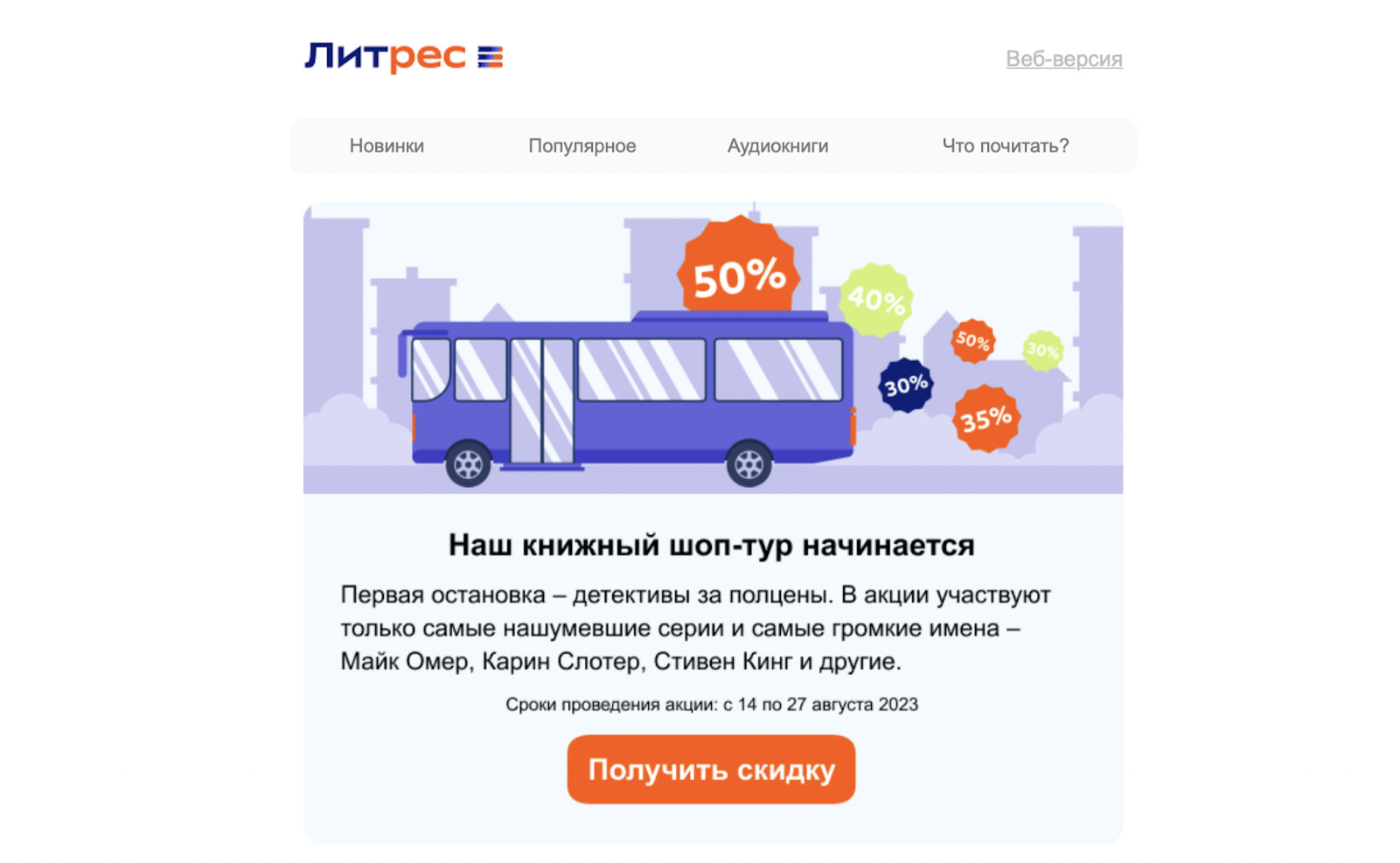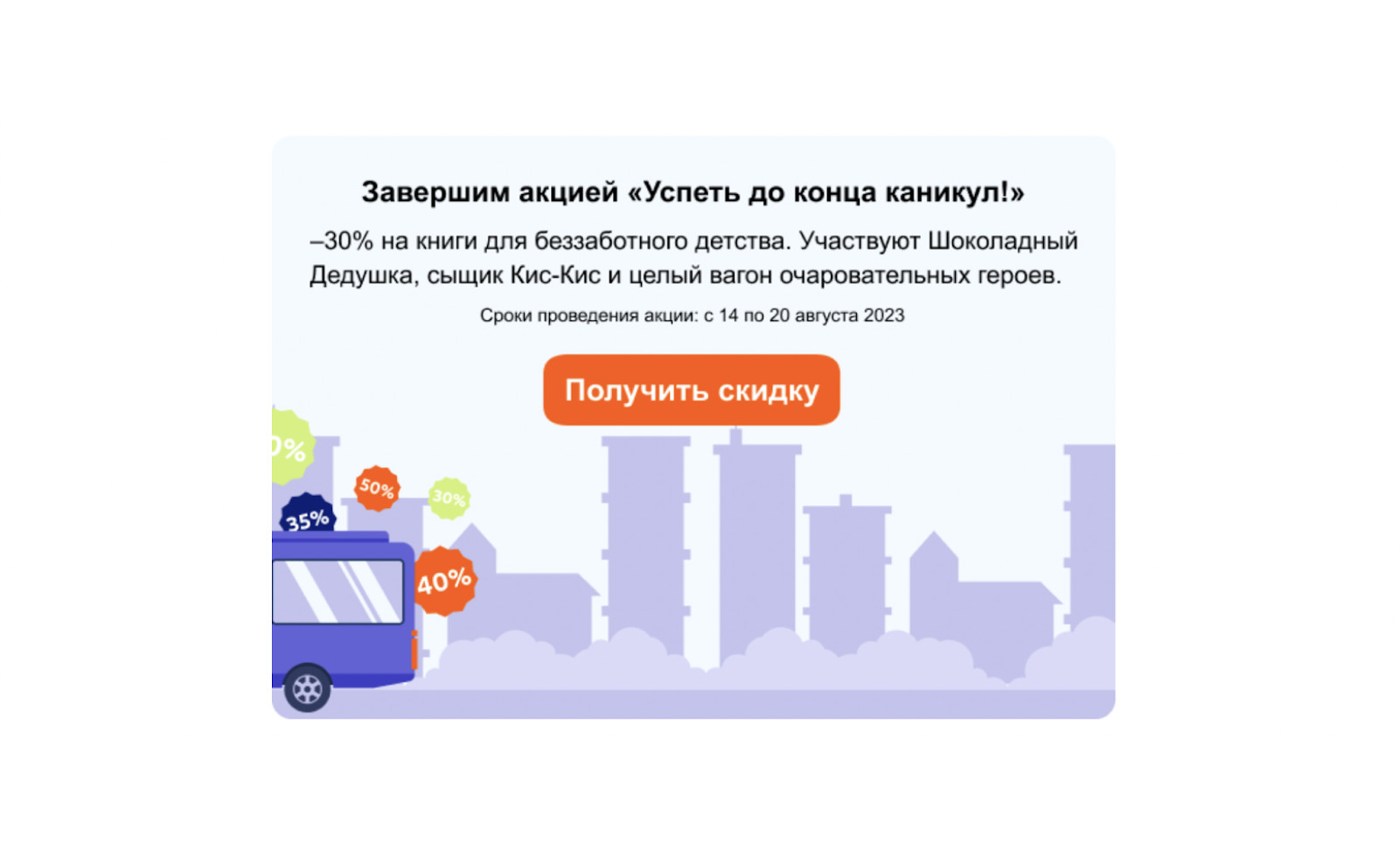 Сезонность делят на три уровня, который оценивается по падению уровня продаж. Для планирования маркетинговых действий рассчитывается коэффициент сезонности. Эта метрика показывает, в какой месяц года продажи увеличиваются, а в какой уменьшаются. Рассчитывается помесячно по формуле: Результат будет выглядеть, например, так: Чтобы рассчитать средние продажи за год, нужно суммировать количество проданных товаров (услуг) за каждый месяц и разделить на 12. Есть более углубленные способы, чтобы изучить сезонность спроса. Отношение колебания рынка за месяц к году или периоду в несколько лет показывает индекс сезонности. Маркетологи учитывают сезонный фактор спроса, чтобы удержать или привлечь больше клиентов для бизнеса и сделать им правильный оффер. Изменение периодов покупательной активности — это ещё и возможности для роста и развития. Какие преимущества даёт сезонный маркетинг: Увеличение продаж за счёт ажиотажа на какие-то товары. Особенно, когда у клиента возникает острая потребность. Например, в городе сильная жара, и повышается спрос на сезонные услуги, как установка кондиционеров. Или другой вариант — люди идут в магазины, чтобы скупить все вентиляторы в наличии. Здесь же возвращается «спящая» клиентская база — люди, которые уже знакомы с вашим брендом, но ждут скидок на сезонные товары. Или просто совершают покупку, потому что продукт стал для них актуальным. Например, человек подписался на аккаунт магазина солнечных очков зимой и следил за контентом, а купил уже летом. Привлечение новых клиентов. Когда меняются виды спроса от низкого к высокому, бизнесу проще получить новых покупателей. Люди сами уже ищут определённые сезонные товары и услуги. Повышение узнаваемости. Сезонные колебания спроса — это возможность для бренда заявить о себе и выйти на рынок со своим предложением. Специальные акции, креативные рекламные кампании, которые выделяют бизнес на фоне других, сделают его узнаваемым и привлекут клиентов через разные каналы продвижения в маркетинге. Главное правило сезонного маркетинга — готовить заранее те самые «сани летом, а телегу зимой». Как минимум начать планирование за несколько месяцев, чтобы пройти все этапы не в спешке. Что нужно сделать: 1. Провести анализ: 2. Поставить цели, выбрать даты проведения кампании и установить критерии её оценки. Обычно это ROI, который показывает отдачу от вложенных средств. 3. Придумать креативные кампании и размер скидок, которые вы готовы предоставить. Предложения должны быть привлекательными для клиента и ожидаемыми: люди знают про сезонные скидки и часто их ждут. 4. Выбрать инструменты и форматы для реализации. После анализа прошлых кампаний у вас будет представление о том, какие каналы коммуникации работают эффективнее всего: емайл, мессенджеры, пуш сообщения. Креативный подход к рекламе выделит вас среди конкурентов. Возможно, стоит запустить не просто акцию, а игру, придумать особый тематический контент, изменить оформление. Не бойтесь внедрять новые инструменты: динамические элементы в рассылках, programmatic рекламу. Тестируйте и выбирайте лучшие варианты. 5. Запустить кампанию и отслеживать результат. Держите руку на пульсе, чтобы скорректировать рекламу вовремя. Самое известное время для сезонного маркетинга — Новый год. Так издательство «МИФ» подготовило акцию