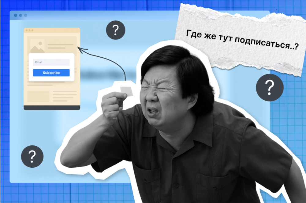 Если форма подписки спрятана в одном месте — например, только в подвале сайта или глубоко в приложении — пользователи вряд ли её найдут. Никто не будет специально искать, куда ввести email, номер телефона или где согласиться на push-уведомления. Особенно если они вообще не знают, что такая опция существует. До футера сайта с формой долистают не все. А если она доступна только на одной странице, это сильно усложняет путь: человек быстро забудет о такой возможности и вряд ли вернётся к ней позже. Если вы хотите, чтобы пользователь точно узнал о возможности подписки, используйтепопапы. Да, бывает, что они раздражают. Но при грамотной настройке — в нужное время и в подходящем месте — такой формат отлично работает и помогает увеличить базу.